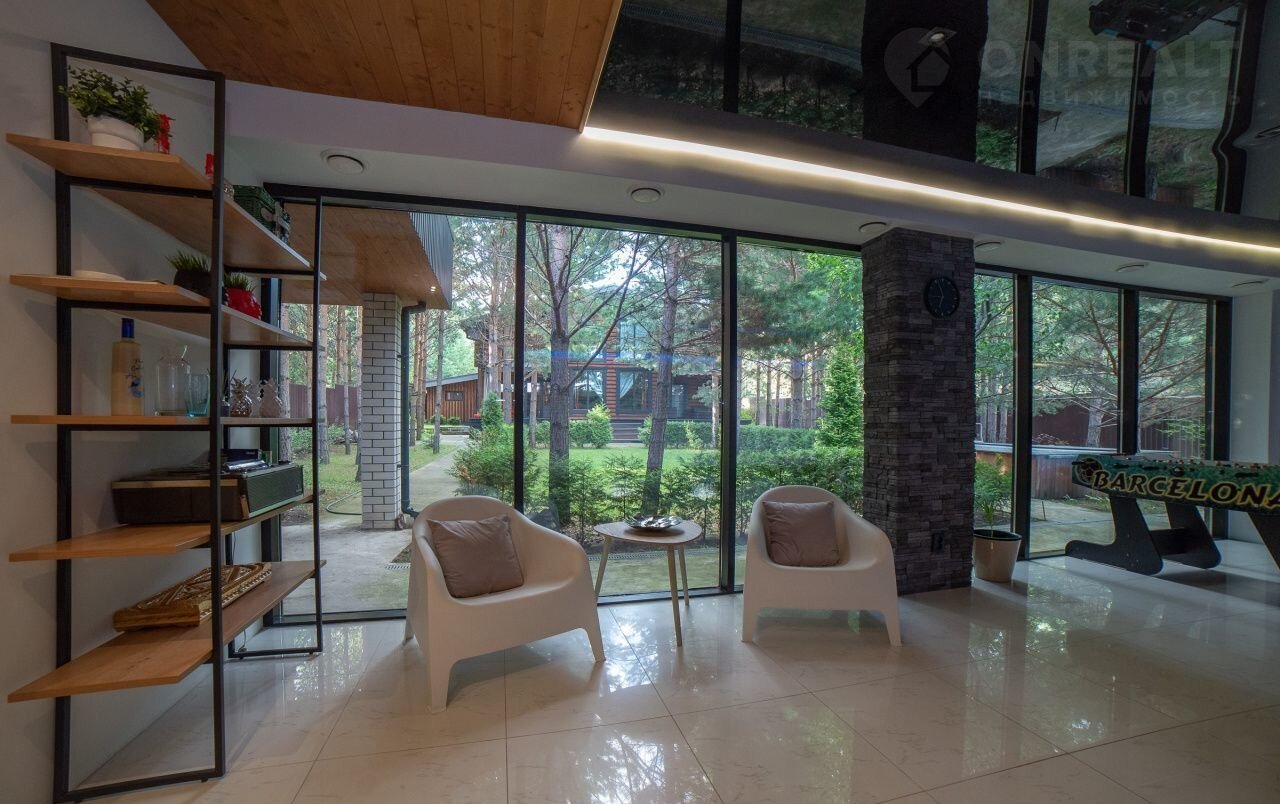 И особенная деталь этого дома, которая сделает вашу жизнь неповторимо прекрасной – отдельно стоящий СПА-комплекс 120 кв.м.с витражной стеклянной стеной обращенной на участок, круглогодичным бассейном (6х3), двумя комнатами отдыха, одна из которых спланирована под биллиардную (стол 10 футов) и конечно же, настоящей русской баней из кедрового леса. Возле СПА-комплекса, находится крытая зона барбекю 30кв.м.