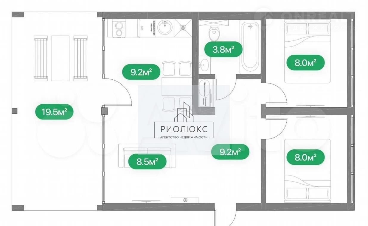 Общая площадь 80 м2
