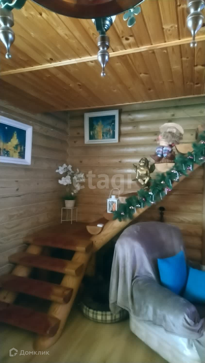 Дом построен из оцилиндрованного бревна