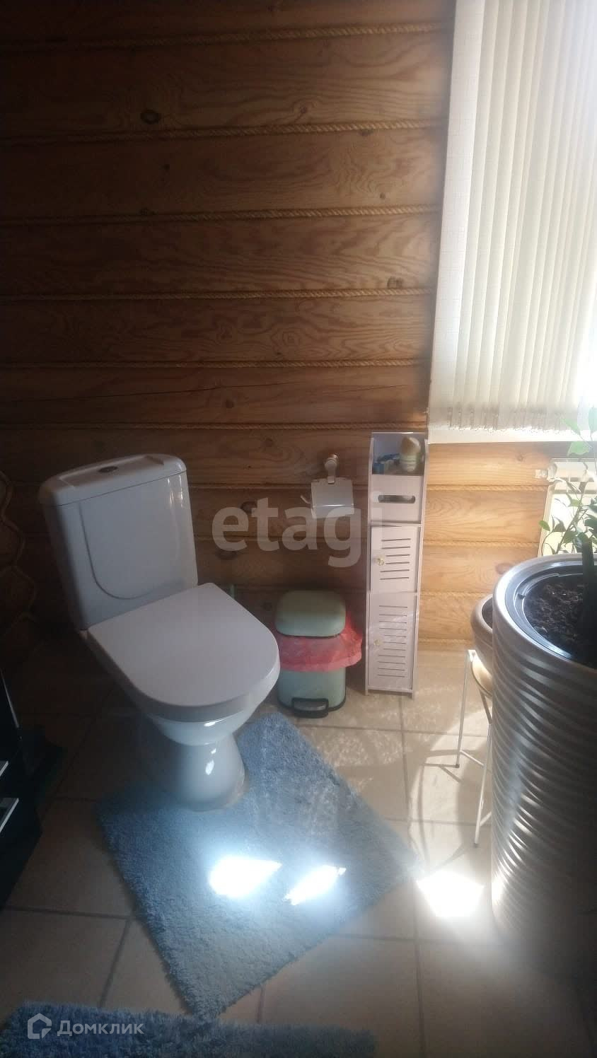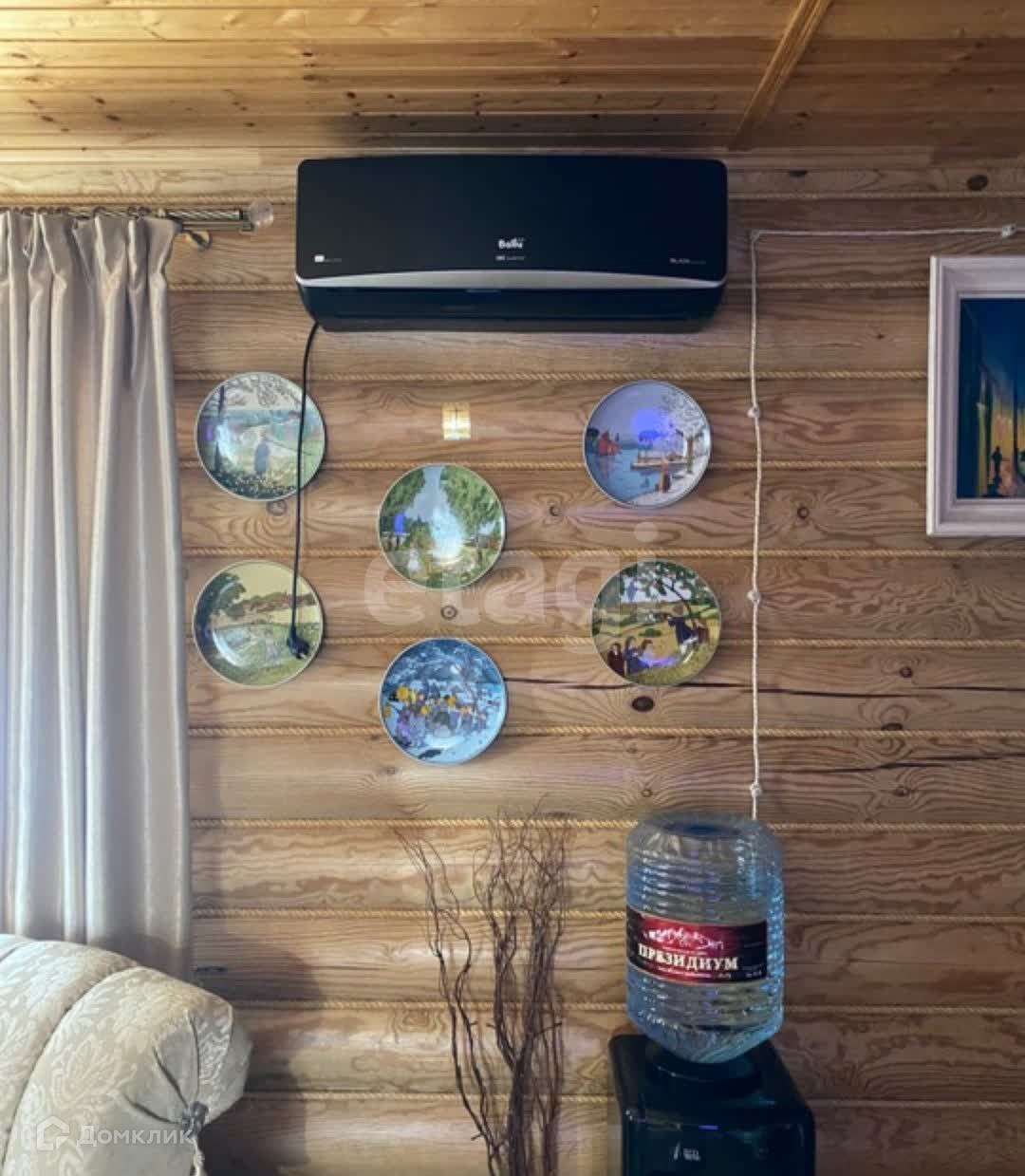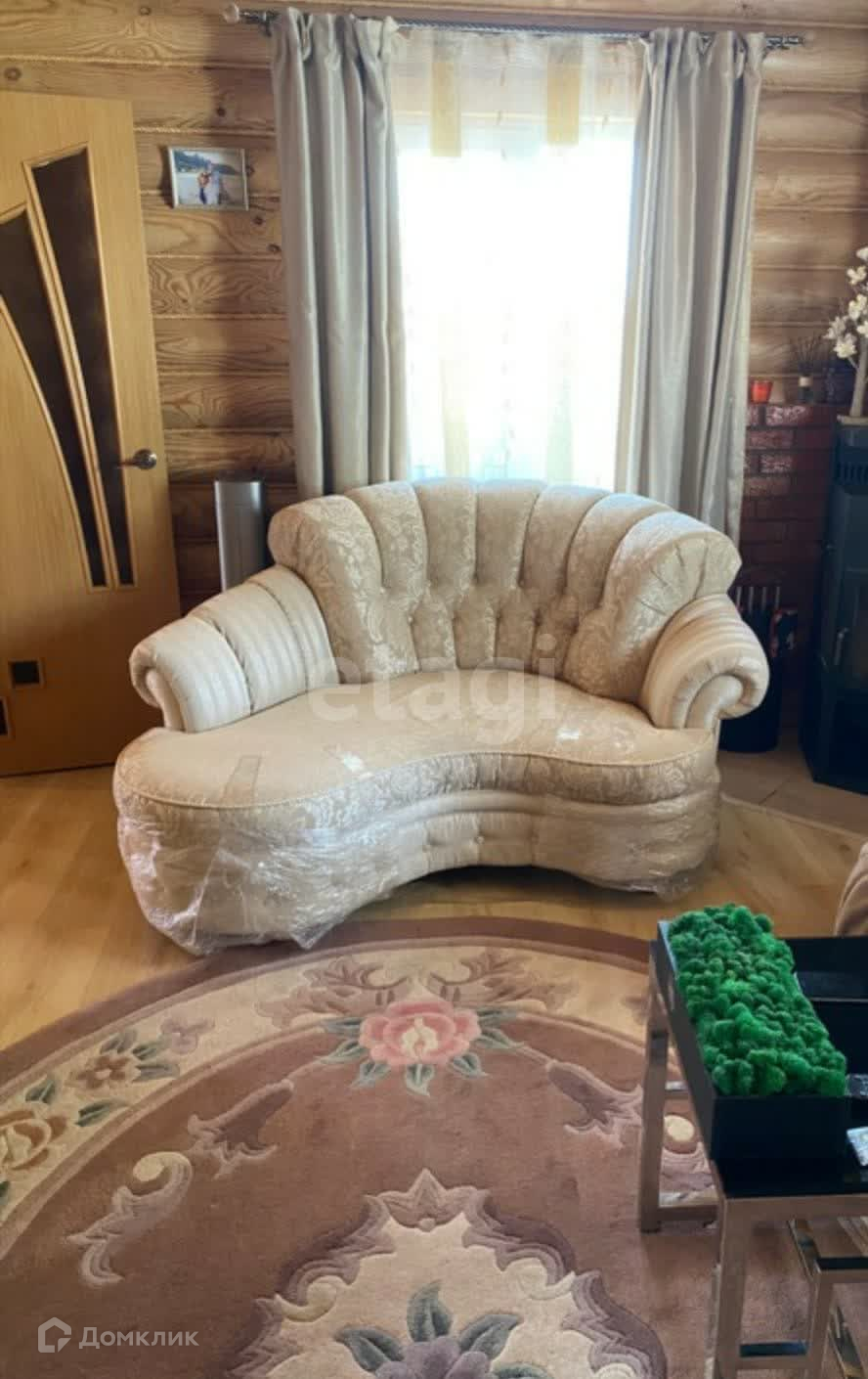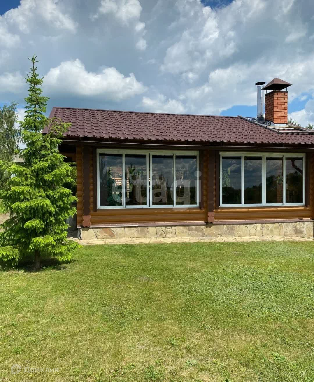 Дом построен из оцилиндрованного бревна