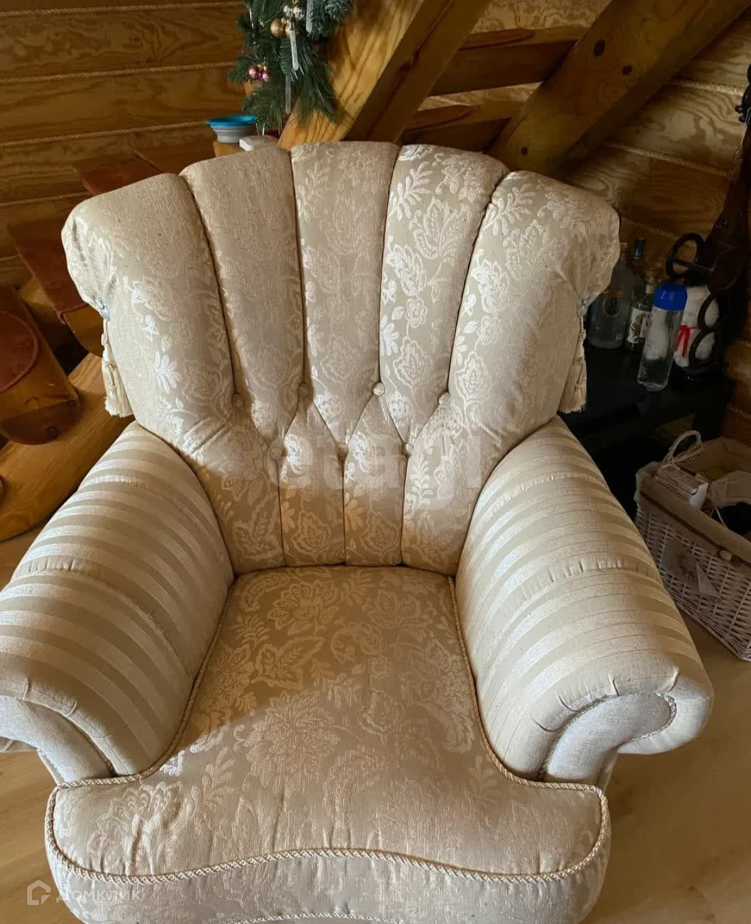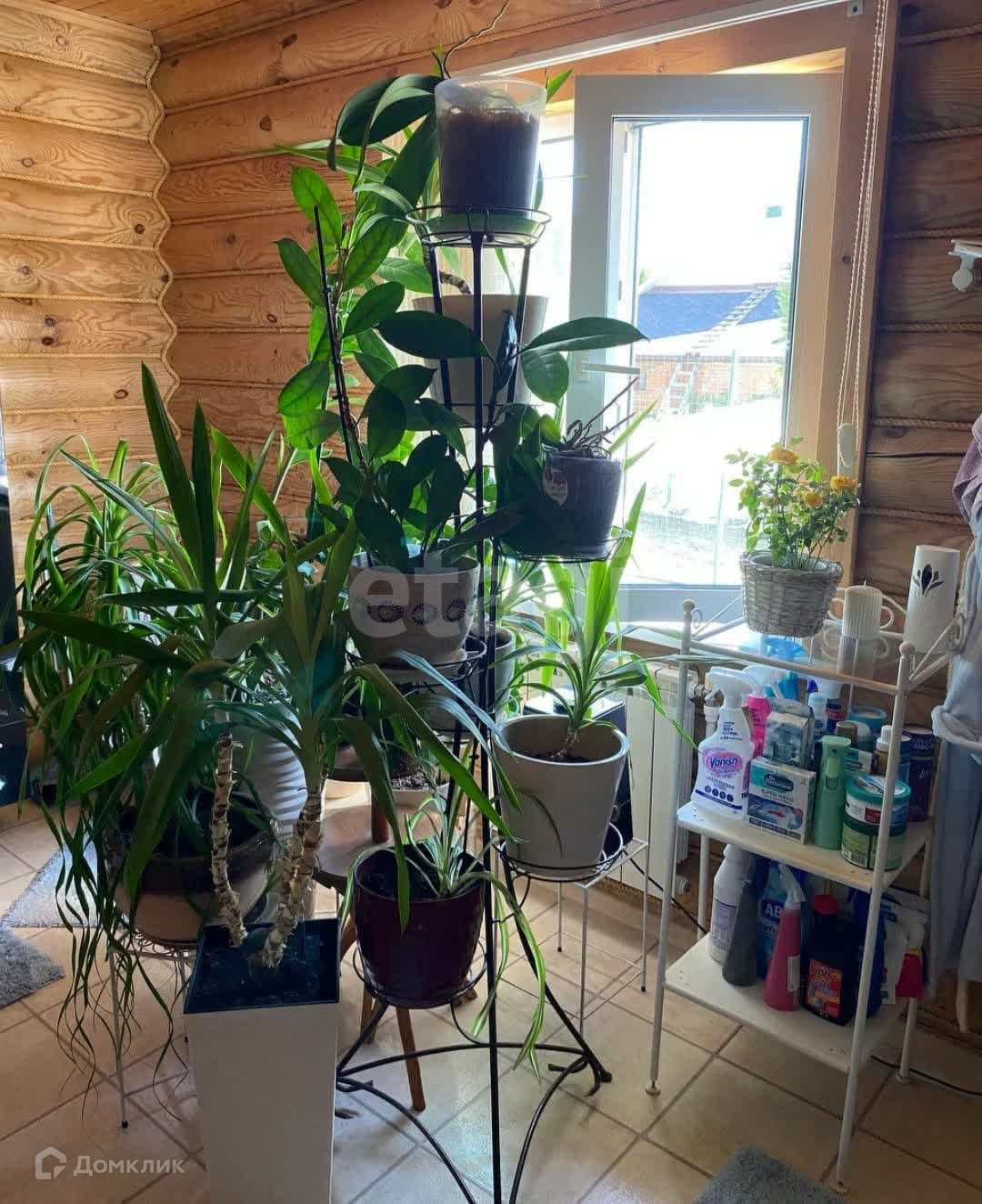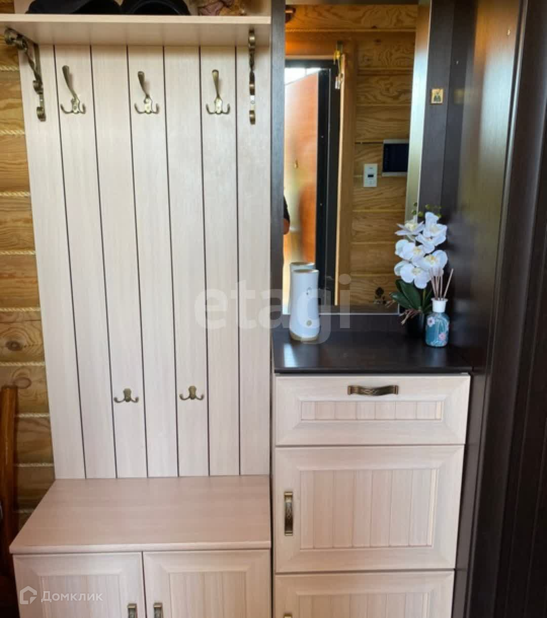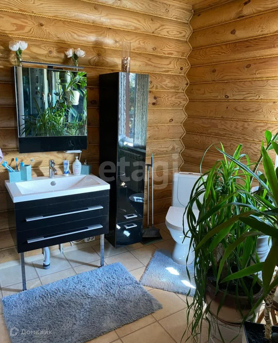Дом построен из оцилиндрованного бревна
