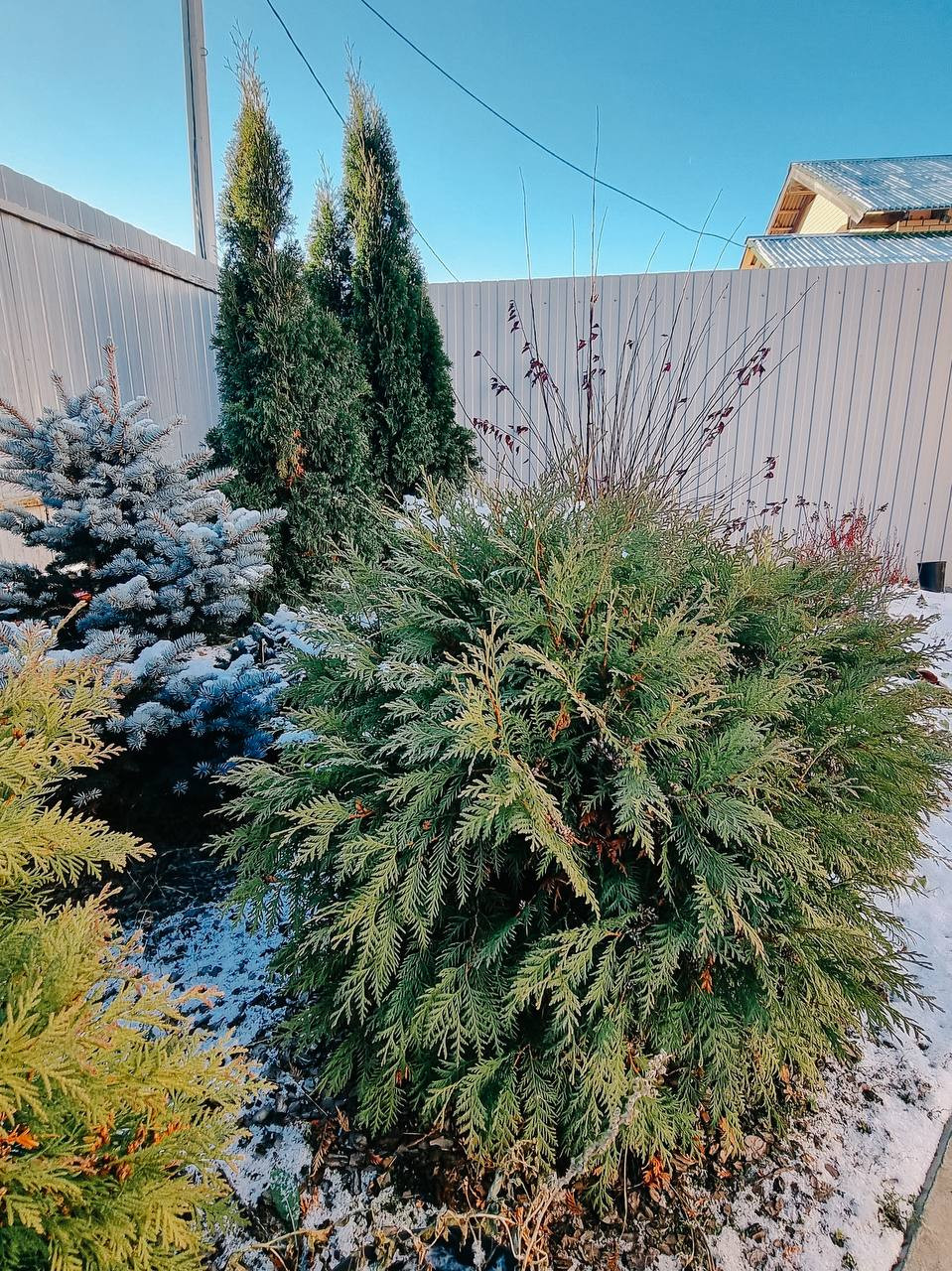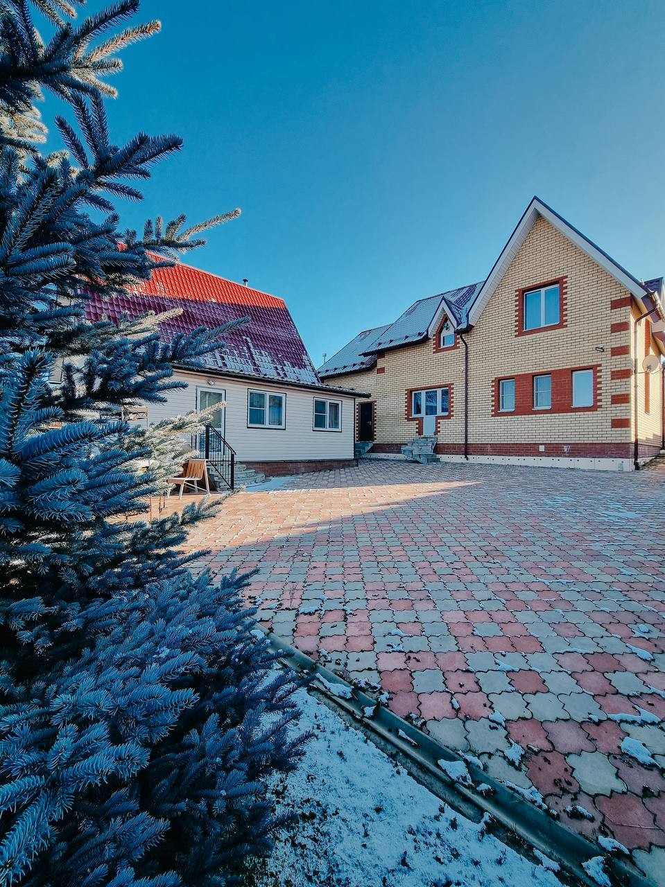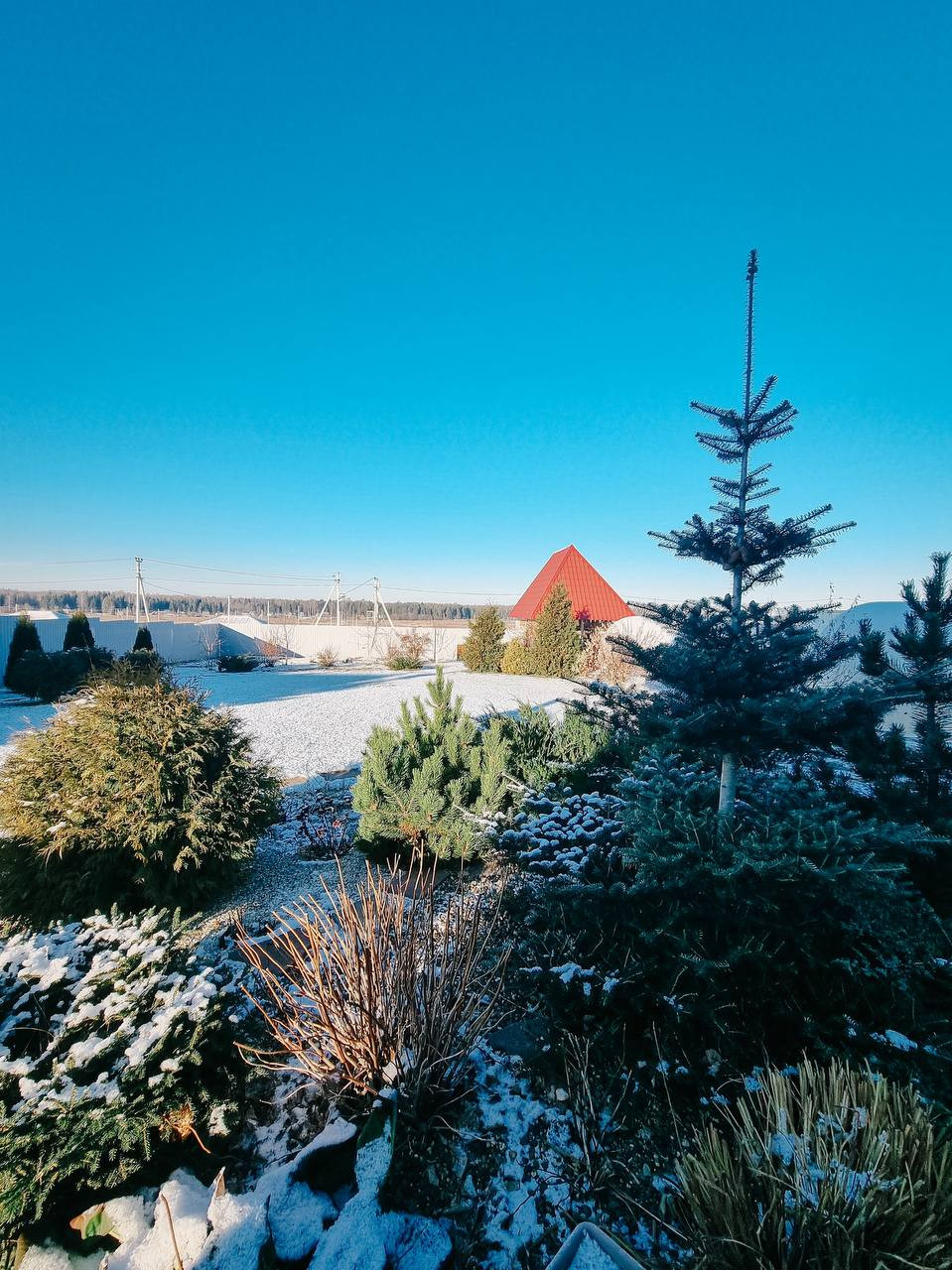 Территория у дома и бани выложена брусчаткой, на участке сделан ландшафтный дизайн, застелен рулонный газон. Имеется автоматический полив (у грядок выведены форсунки для подключения шланга для полива грядок и деревьев). Участок разработан, имеются грядки и 2 теплицы, плодоносные кусты ягод и яблони. По периметру хвойные кустарники и большая голубая ель. Так же есть хоз постройка для хранения инвентаря.