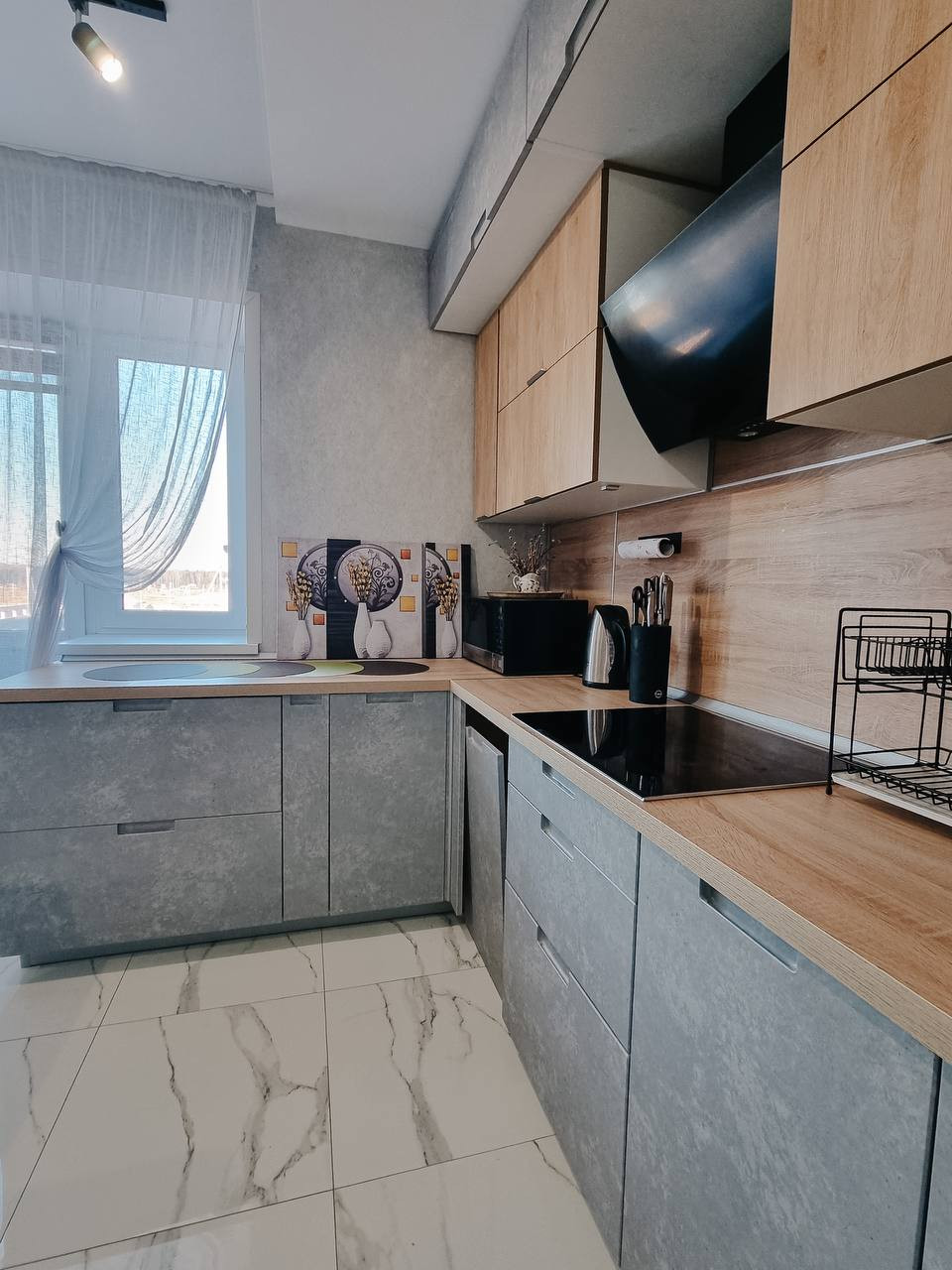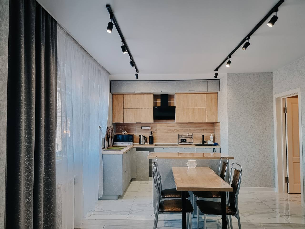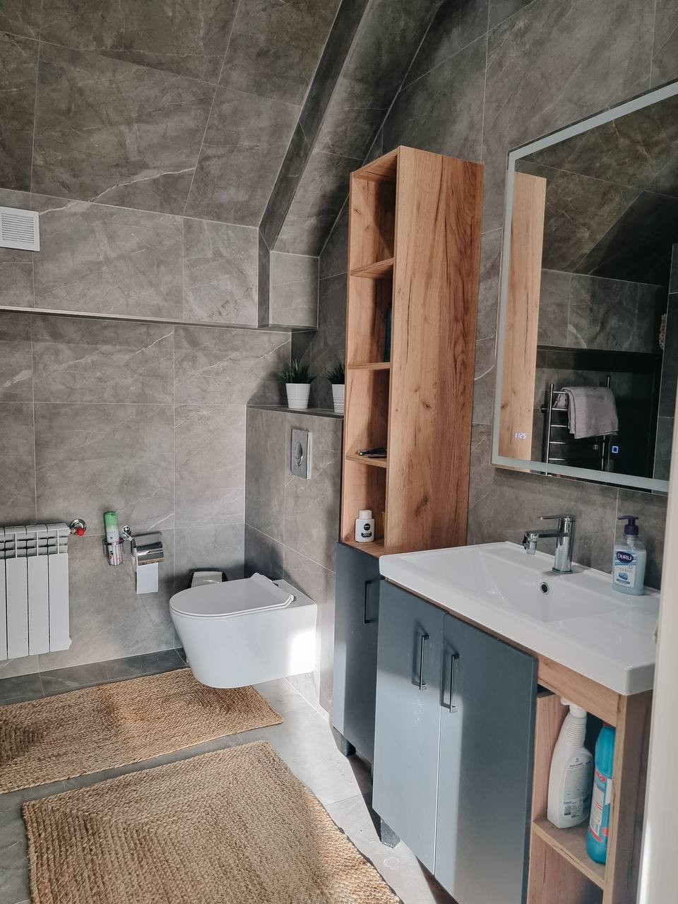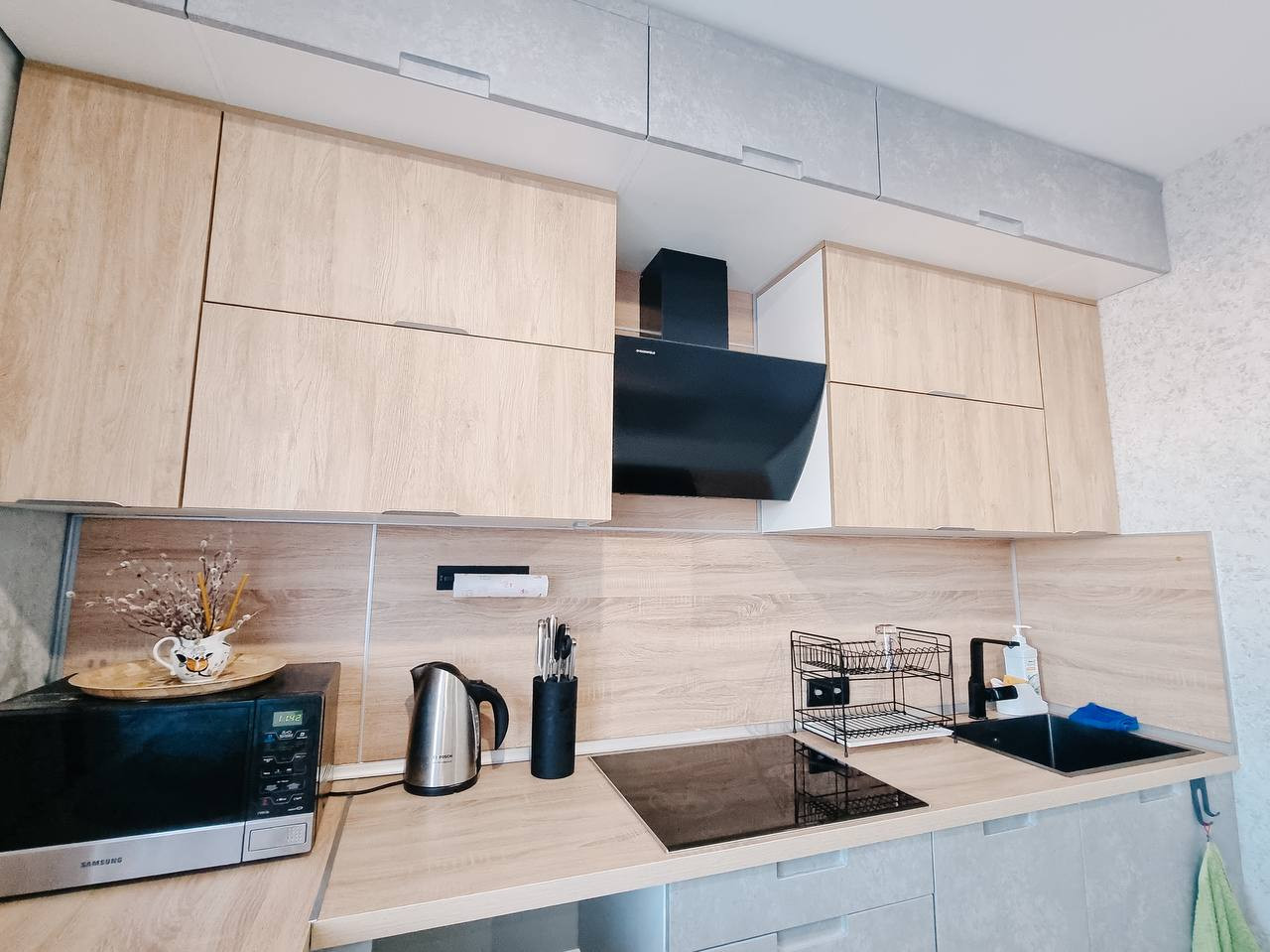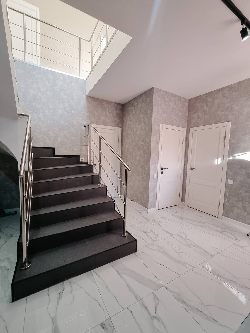 В доме выполнен современный ремонт дорогостоящими материалами: с санузлах, в холле, лестница- керамогранит Керама-мараци. Потолки обшиты гипсокартоном, поклеены обои под покраску и покрашены в белый цвет. На стенах обои премиального класса. По всему первому этажу сделаны водяные теплые полы. Стильный кухонный гарнитур со встроенной техникой Bosch очень функционален и удобен в использовании. В санузлах инсталяция ГРОЕ с подвесными унитазами. Импортные смесители.