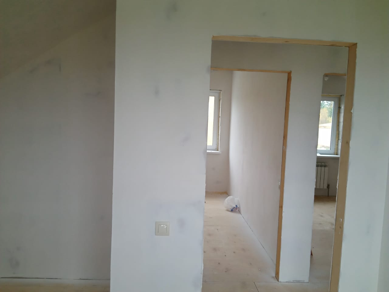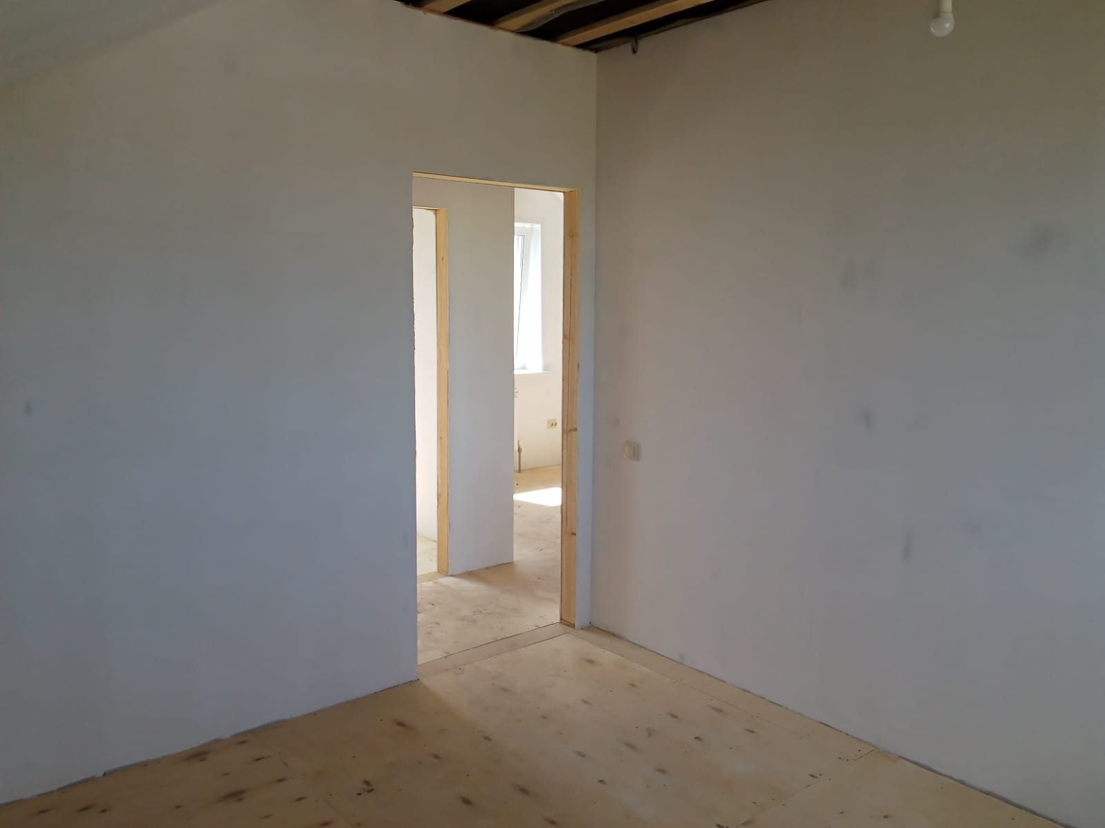 Планировку дома по достоинству оценит семья с детьми : на 1 этаже просторная кухня - гостиная , котельная , прихожая и санузел . На 2 этаже - 3 светлые детские комнаты или уютные спальни и санузел . Внутри дом оштукатурен, возведены перегородки комнат, полностью разведена электрика, установлены розетки и выключатели - сделана белая финишная отделка White box . Электричество 15 кВт по сельскому тарифу . Выведена канализация . Скважина 21 метр с чистой питьевой водой.