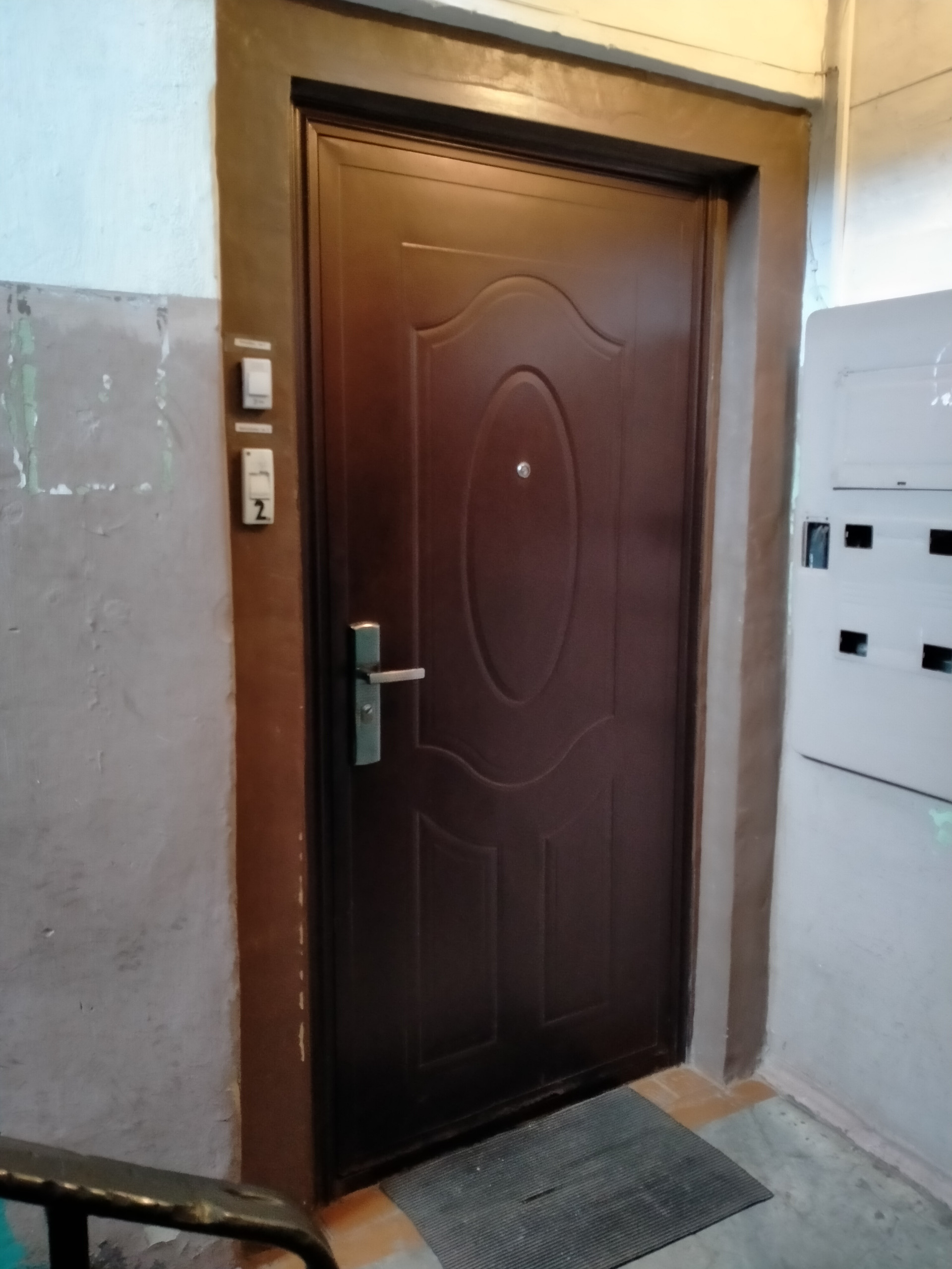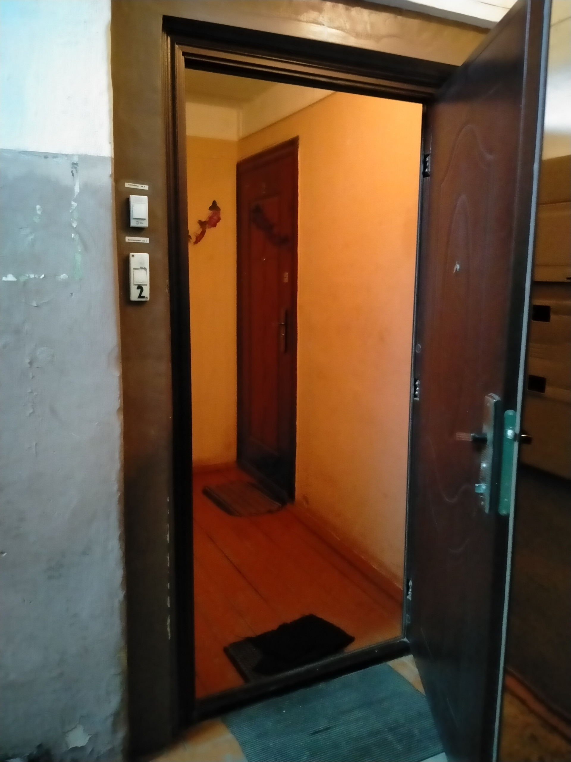 Металлическая дверь, отгороженный тамбур на 2 семьи.