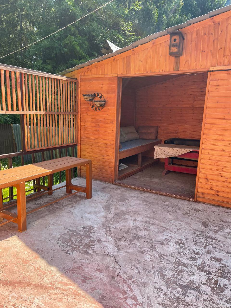 На участке: бассейн, баня на улице, мангал, терраса для вечерних посиделок.