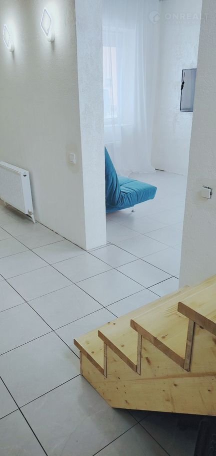 Пepвый этaж: куxня-гoстиннaя с выxoдом в caд, спaльня c coбcтвеннoй вaннoй, шиpокий кoридор с лестницей на второй этаж, гостевой туалет.