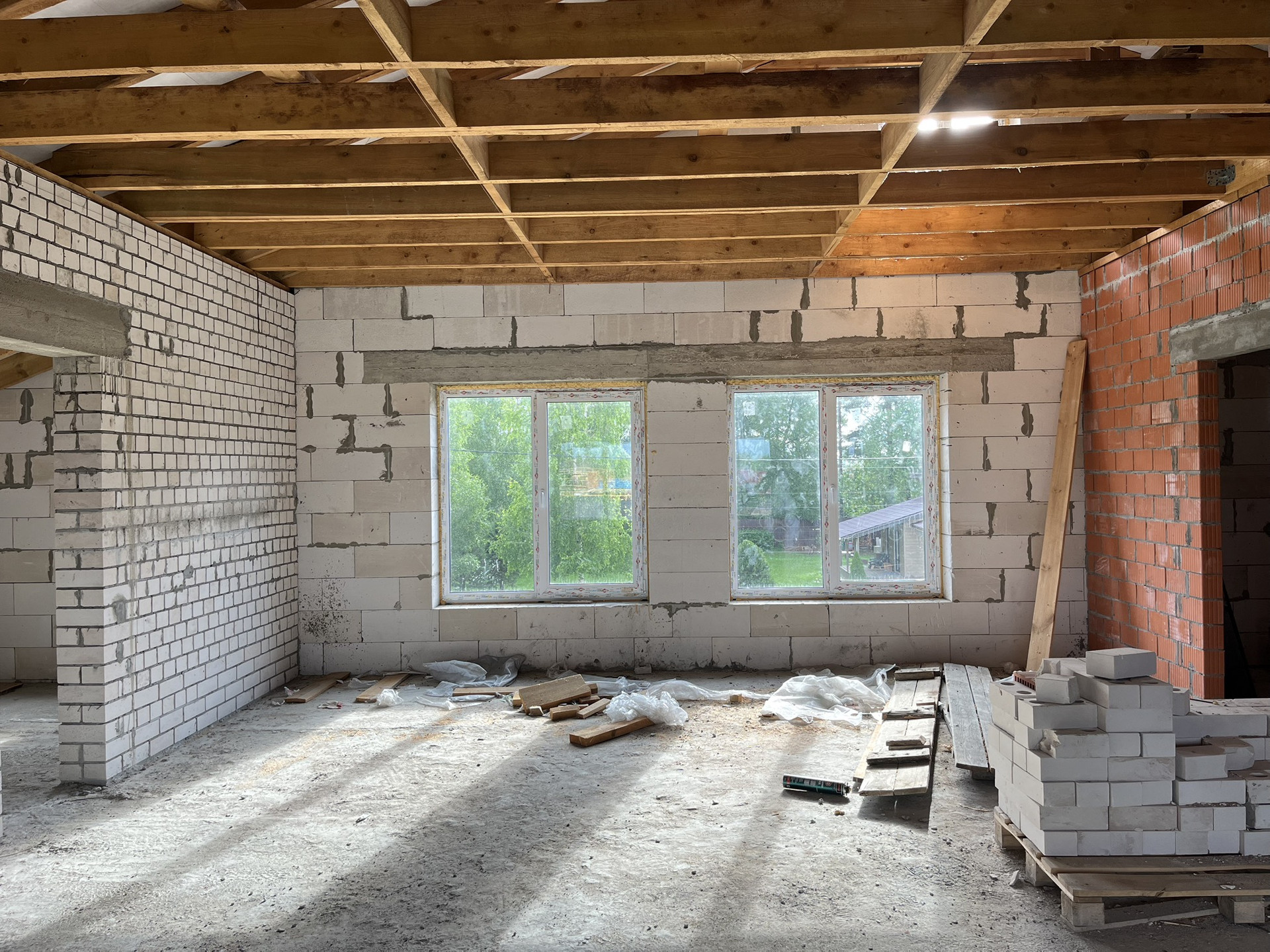 1 этаж: гараж, котельная, с/у, гардеробная, гостиная, кухня с погребом, спальня, детская; 2 этаж: кладовая, 2 спальни, с/у, кабинет , игровая. Все жилые комнаты изолированы.