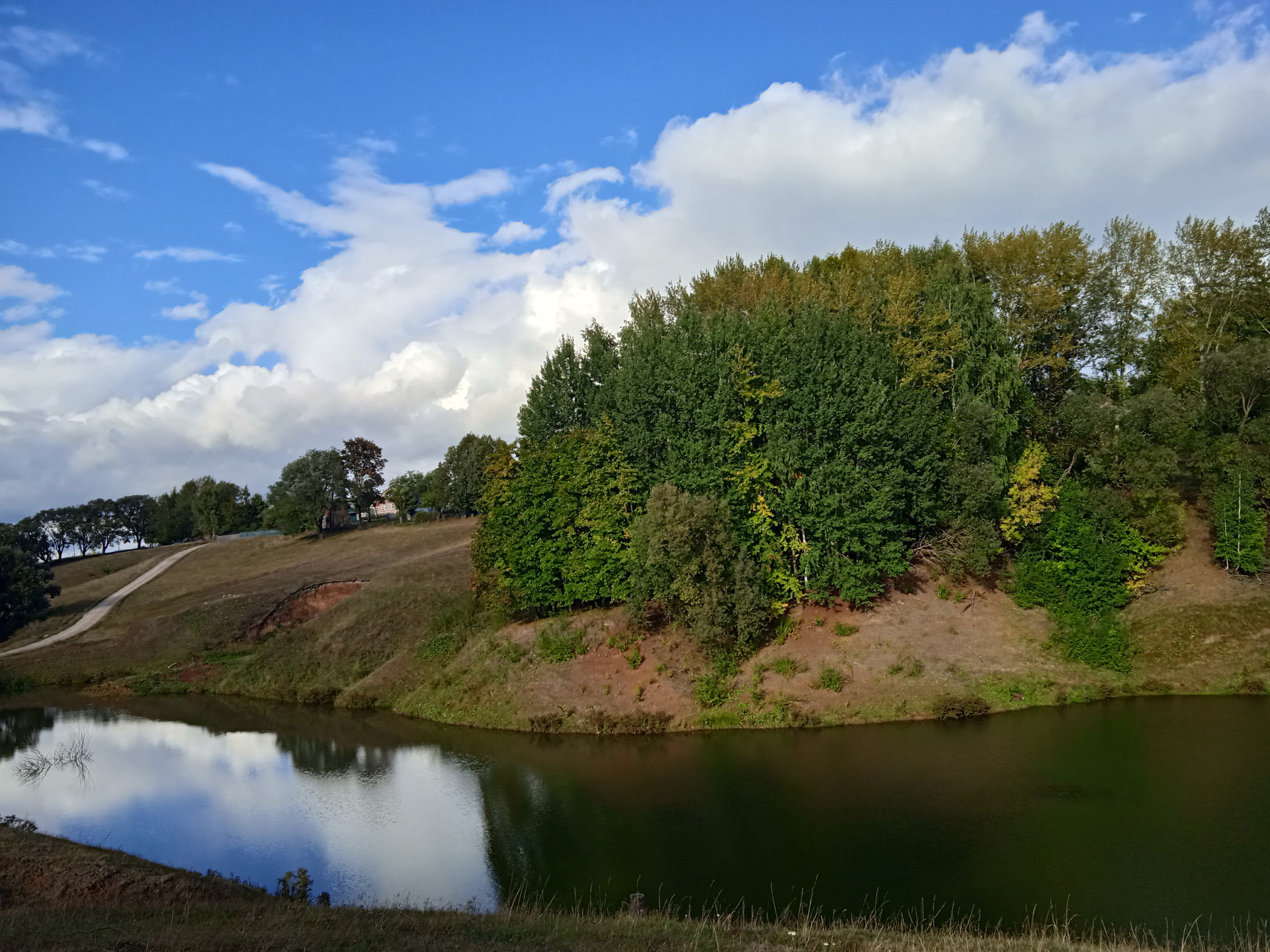 Жилой дом без отделки рядом с городом, все коммуникации проходят рядом: канализация, вода, свет, газ, ровный земельный участок. Рядом пруд