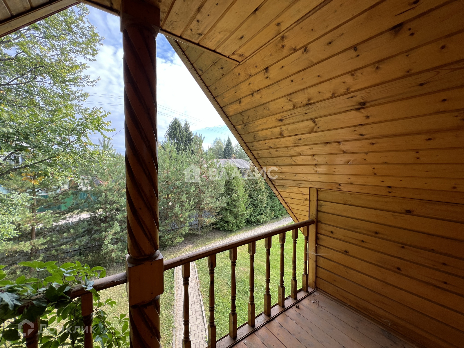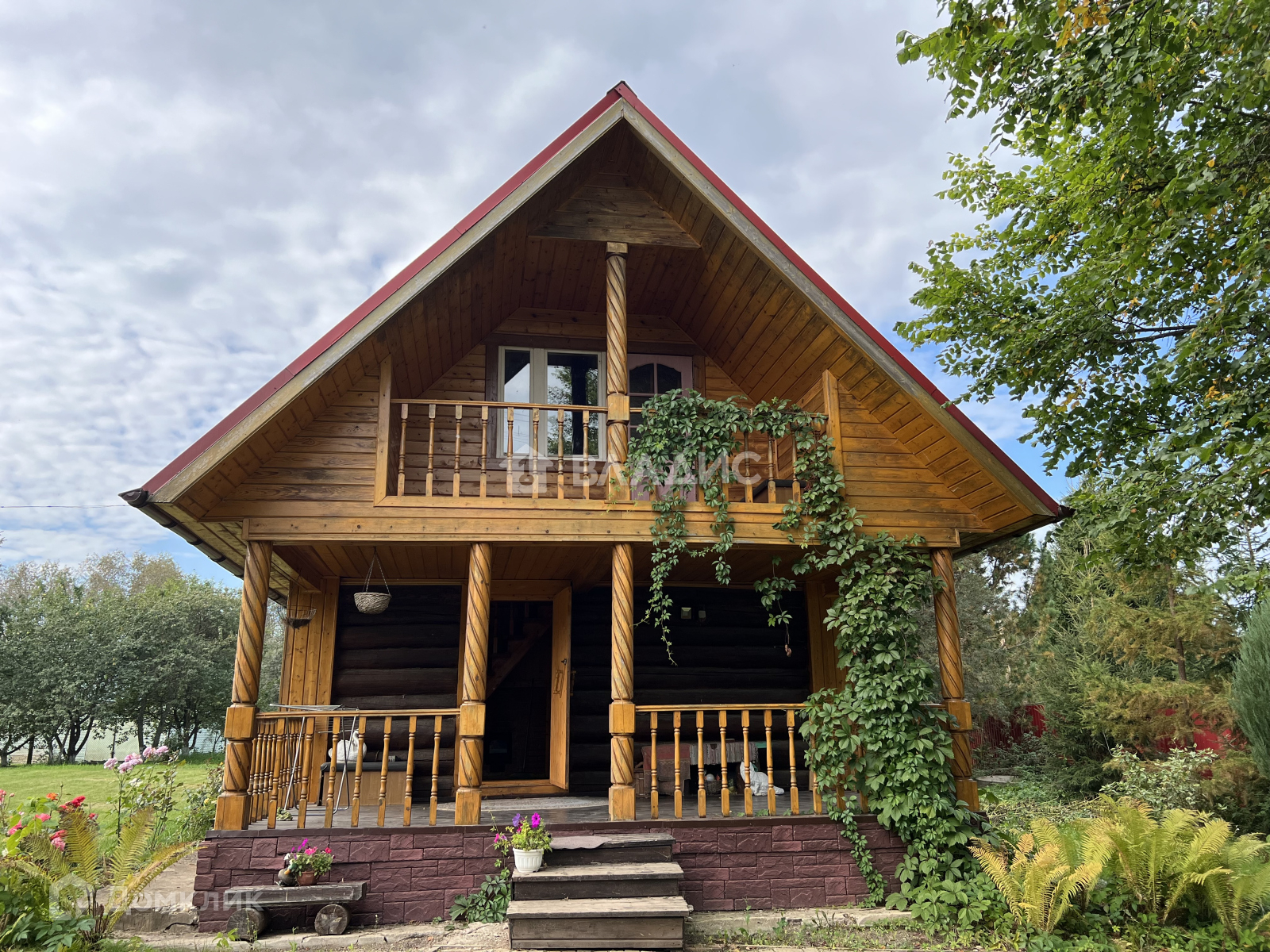 - двухэтажный, бревенчатый, обшит сайдингом;