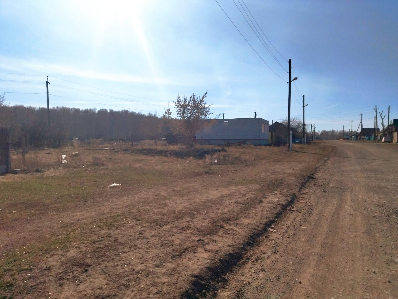 Участок ровный, огорожен сеткой рабицей.