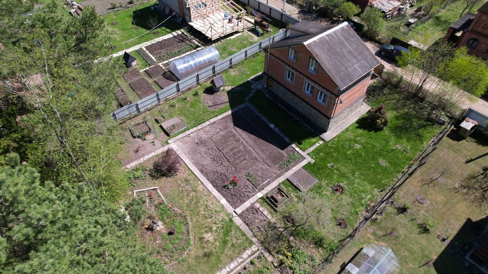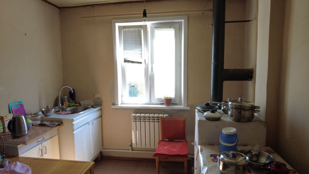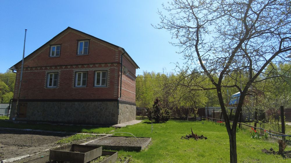Дом кирпичный,  общая площадь 80 кв.м.2х этажная. На первом этаже кухня комната, холл,,  топливная комната с котлом, на втором этаже холл, две комнаты раздельные.   Цоколь дома, высокий отмостка по периметру и площадка перед домом облицованы природным камнем.  ОКНА пвх  на всех этажах, металлические ставни закрываются изнутри. Комнаты обшиты деревом. Дом отапливается камином, твердотопливным- электро котлом, так-же имеется русская печь, возможность проживать до глубокой осени. Санузел в доме.