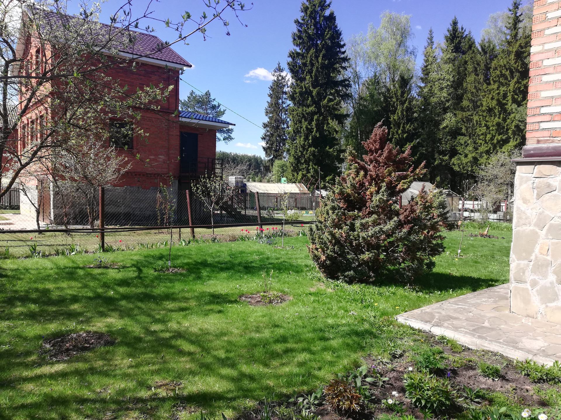 техническая  сезонная вода. Свет в доме с мощностью 15 кВт Участок компактный,ухоженный, клумбы, газон, летний туалет,. Участок полностью огорожен со всех сторон, имеет выход в лес. Соседи многие живут круглогодично