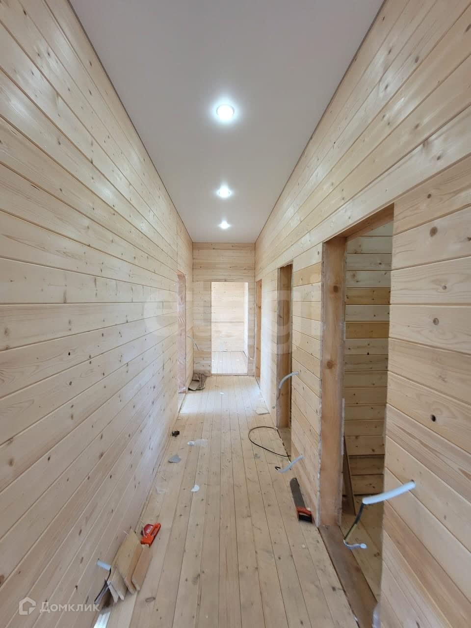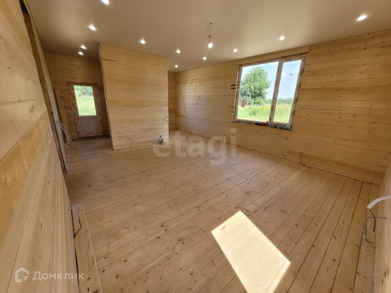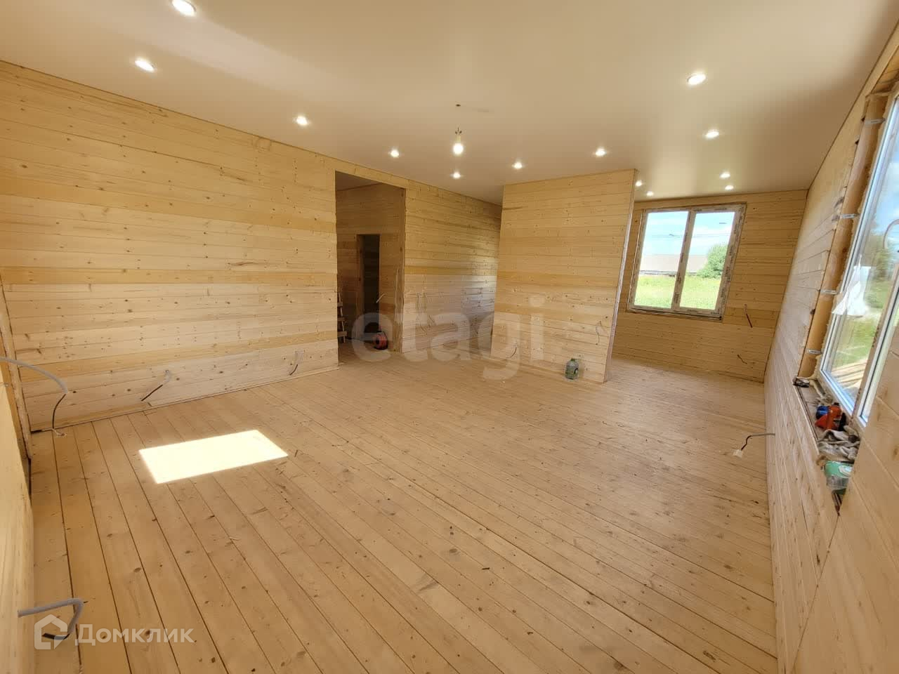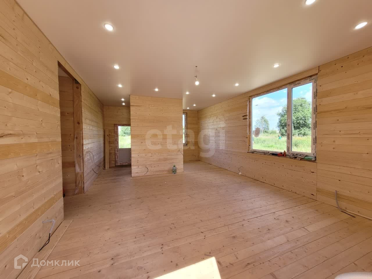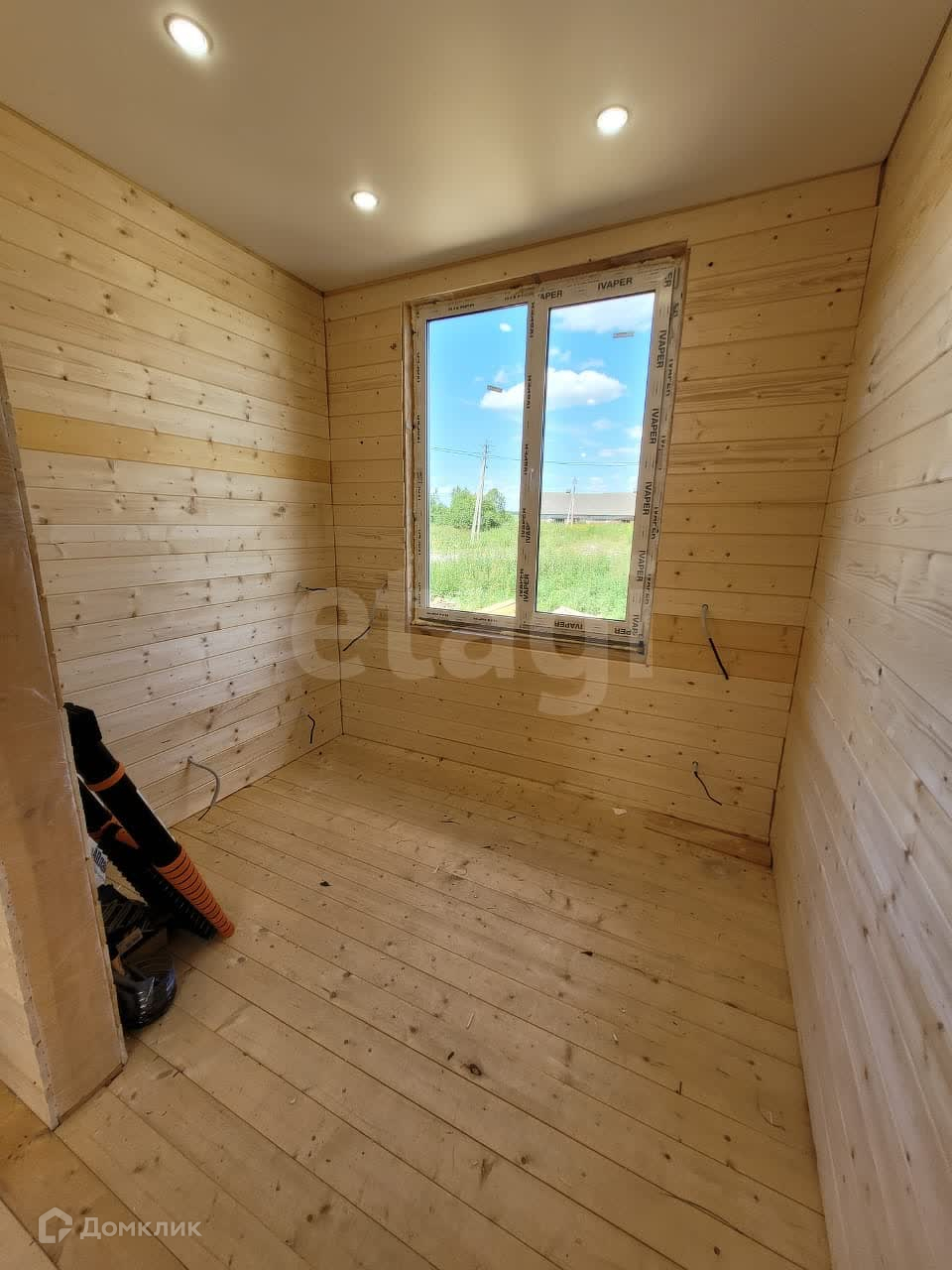 Дом построен по каркасной технологии, утеплитель 150мм, пол и крыша 200мм.  Установлен на забивных железобетонных сваях. В доме  потолки натянуты, электрика под розетки и выключатели  разведена,  вода заведена в дом от колодца, водоотведение выполнено.