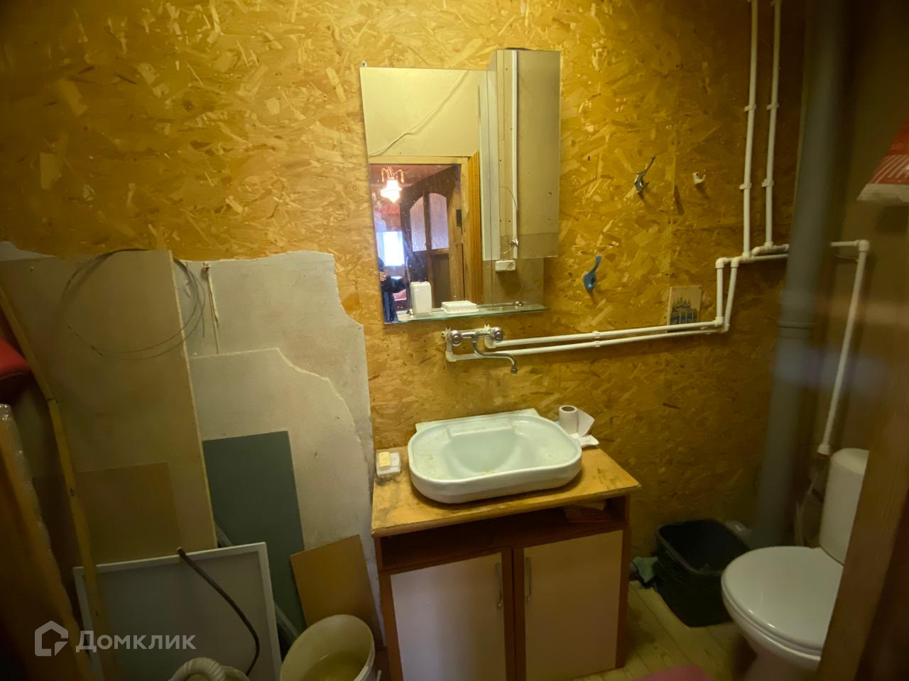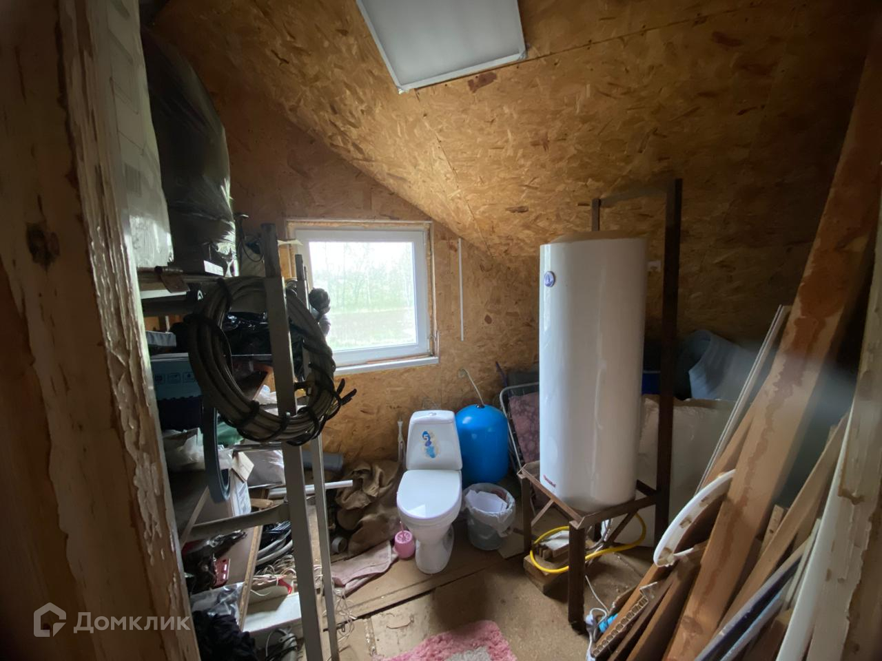 - в доме организован туалет и планировался душ на 1 этаже, на 2 этаже заведены коммуникации под канализацию и установлен электрический котел 80 литров для подогрева воды