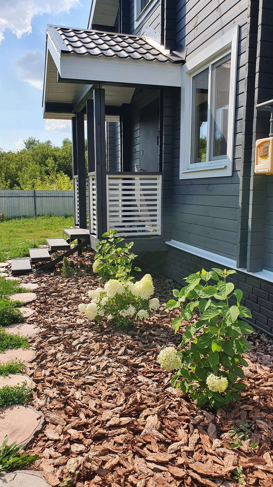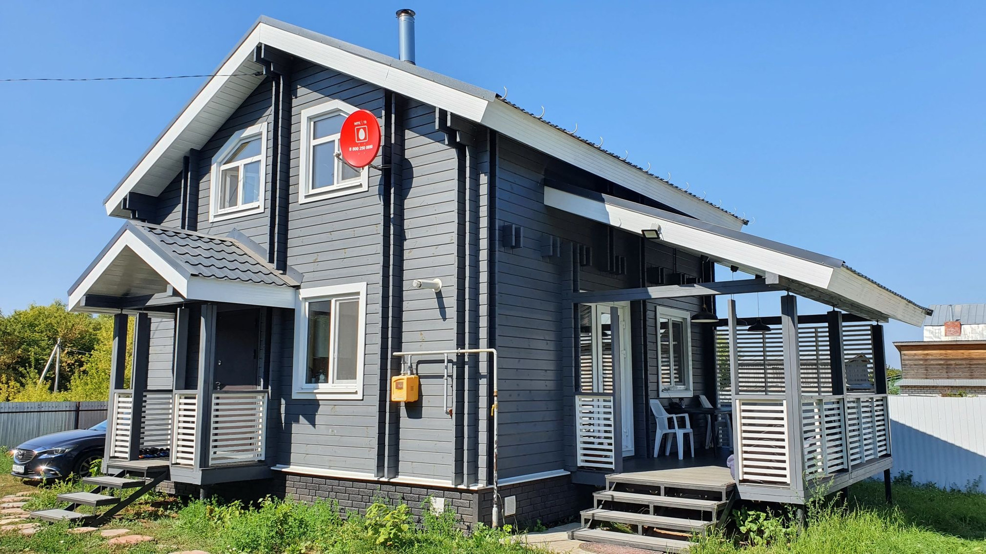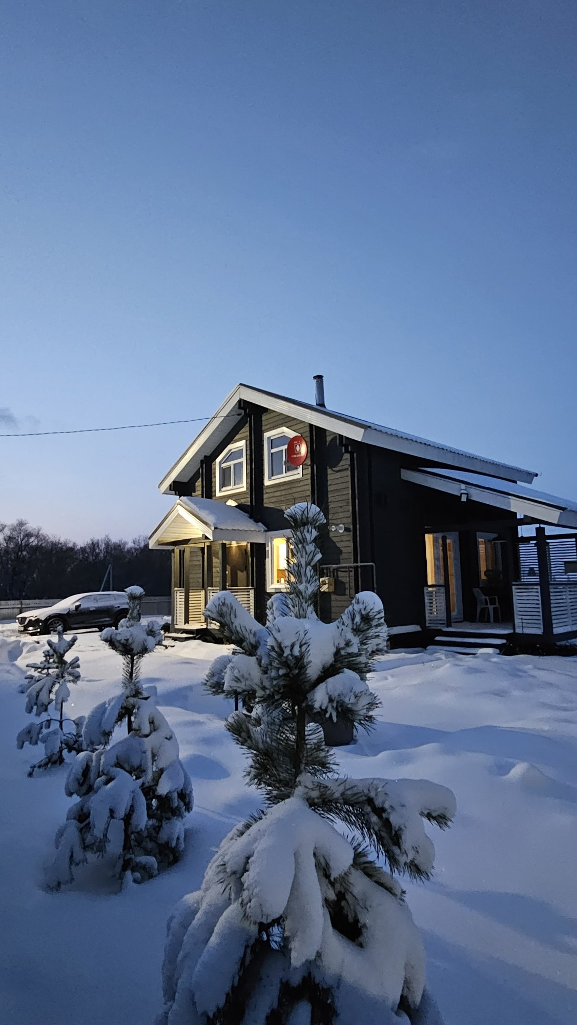 Большим преимуществом является , что по периметру дома практически нет соседей, специально выбирали именно такой участок .