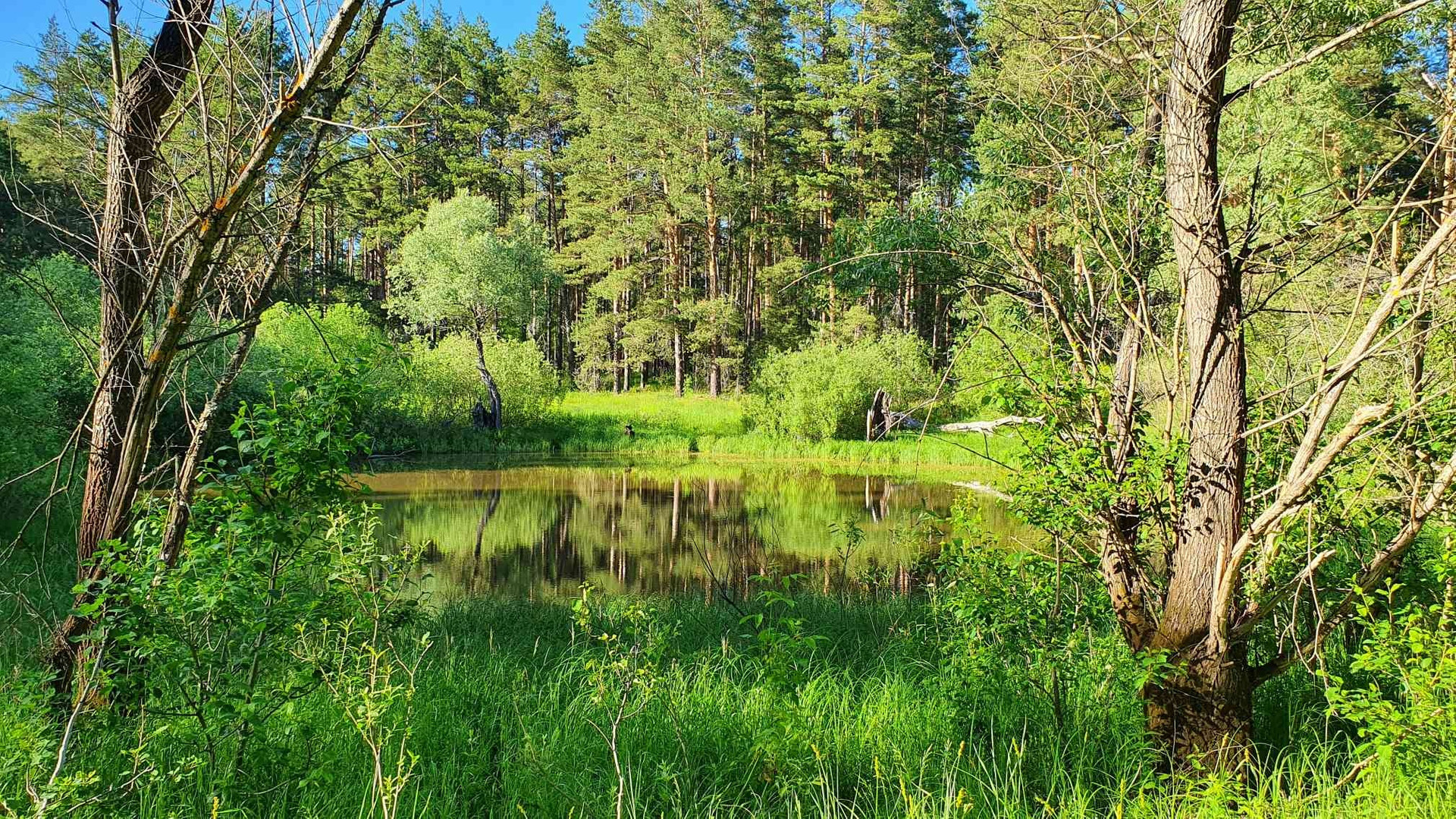 В 5 мин ходьбы ( реально 5 мин ) шикарный Сосновый и смешанный лес , а в 15 мин ходьбы река Меша .