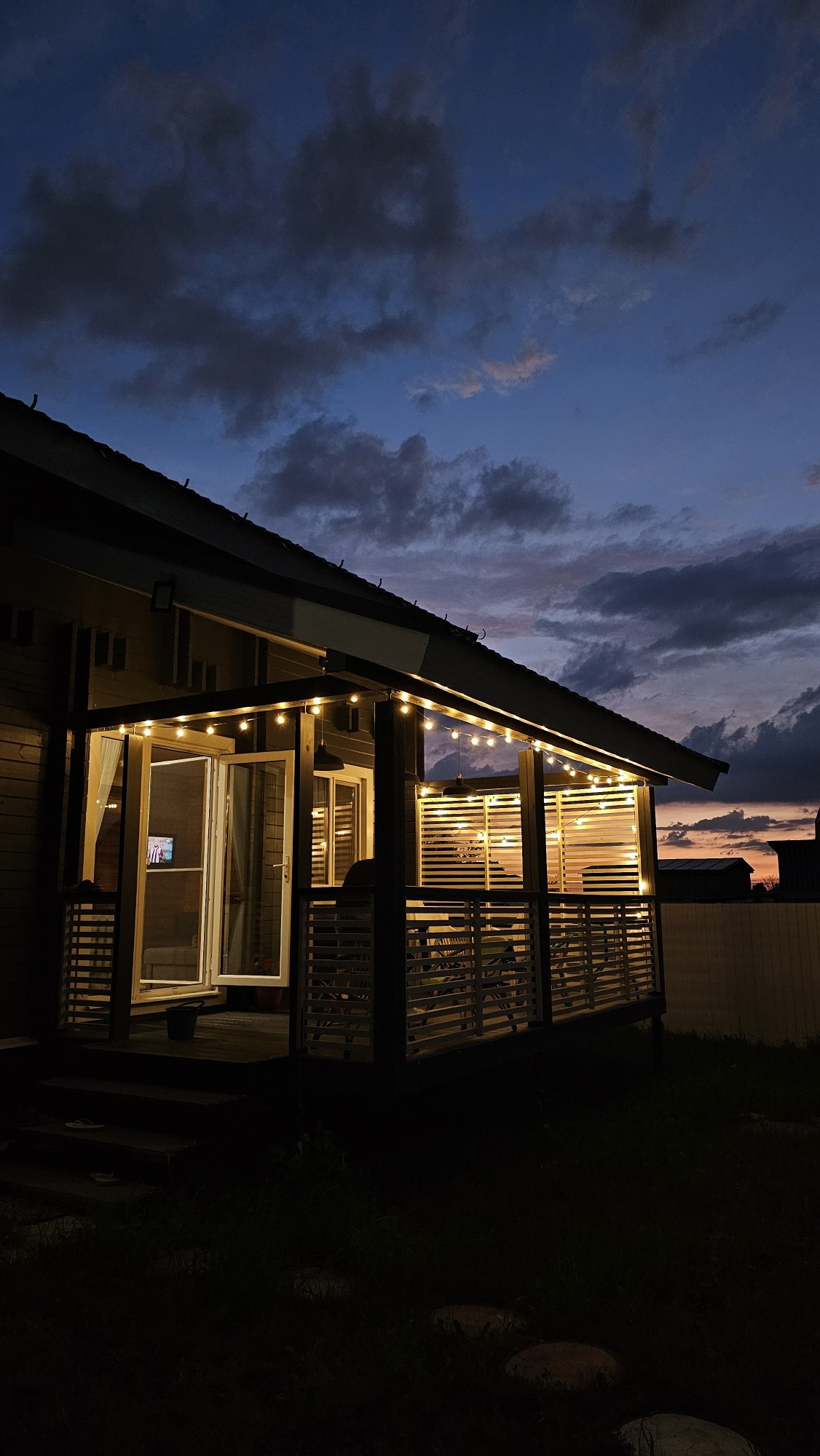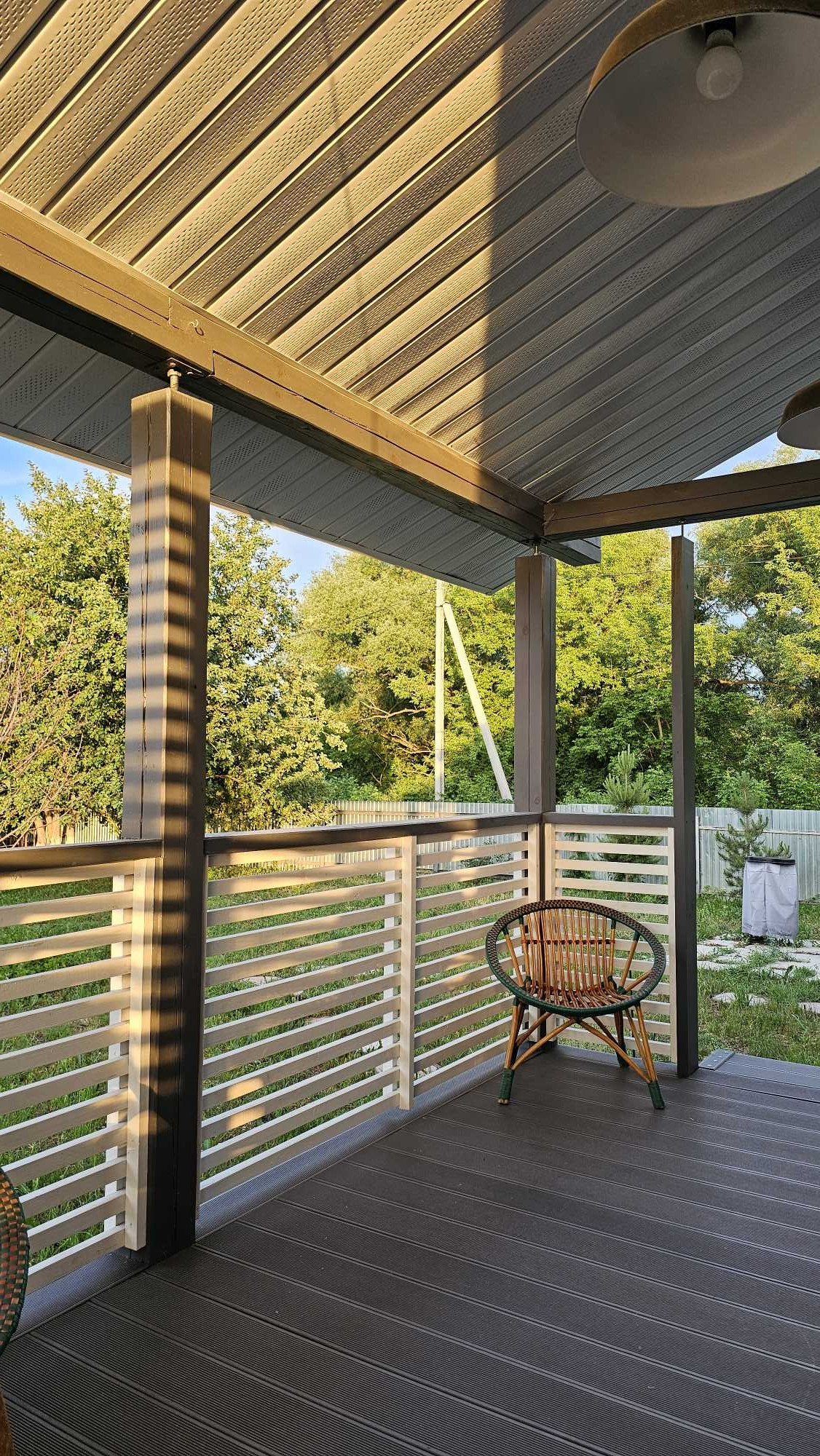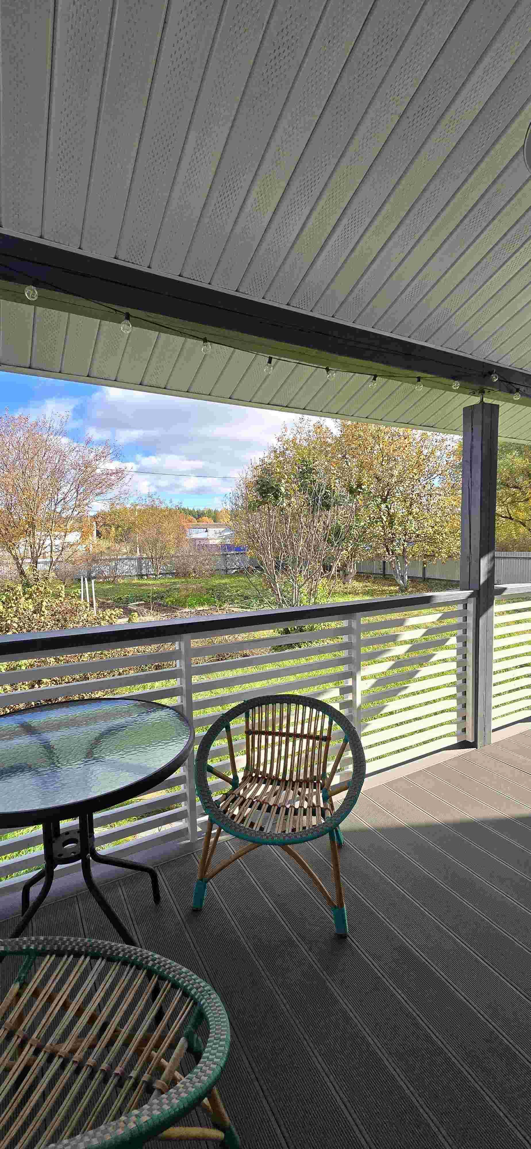 Большая терраса ( это отдельная Любовь ), на полу, которой постелена терасная доска . Дом и терраса покрыты краской Tikkurila в несколько слоев.