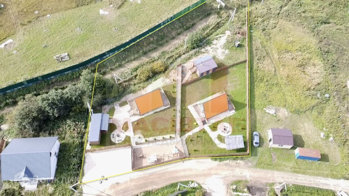 На участке расположены два дома площадью 62.8 квадратных метров и 63.8 второго.