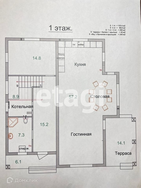 - Дом 248м2 ( из них 200м2 - отапливаемая площадь, 40м2 - два балкона, крытая терраса, крыльцо)