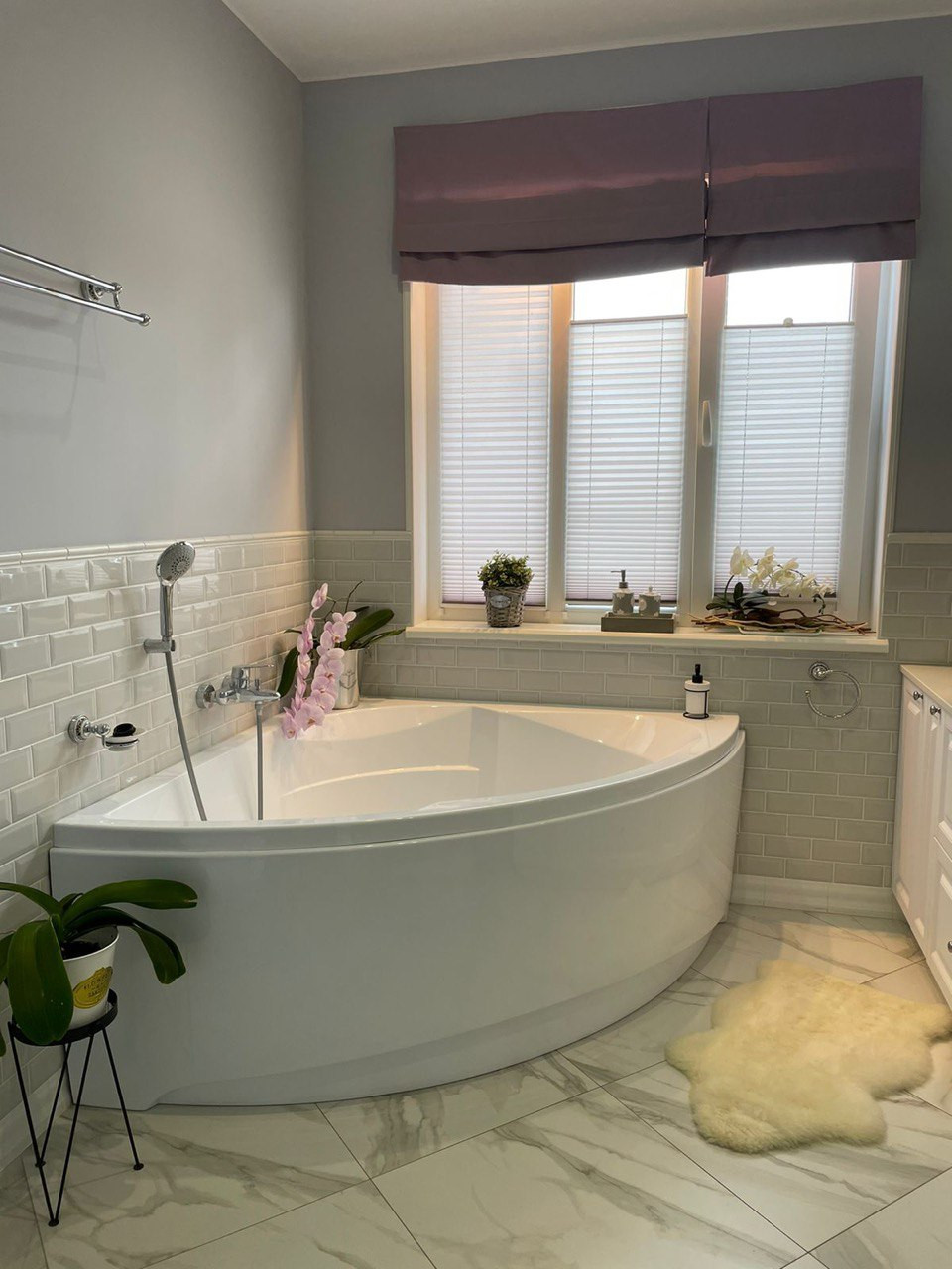 - санузел с ванной и душевой площадью 8 м и большим окном