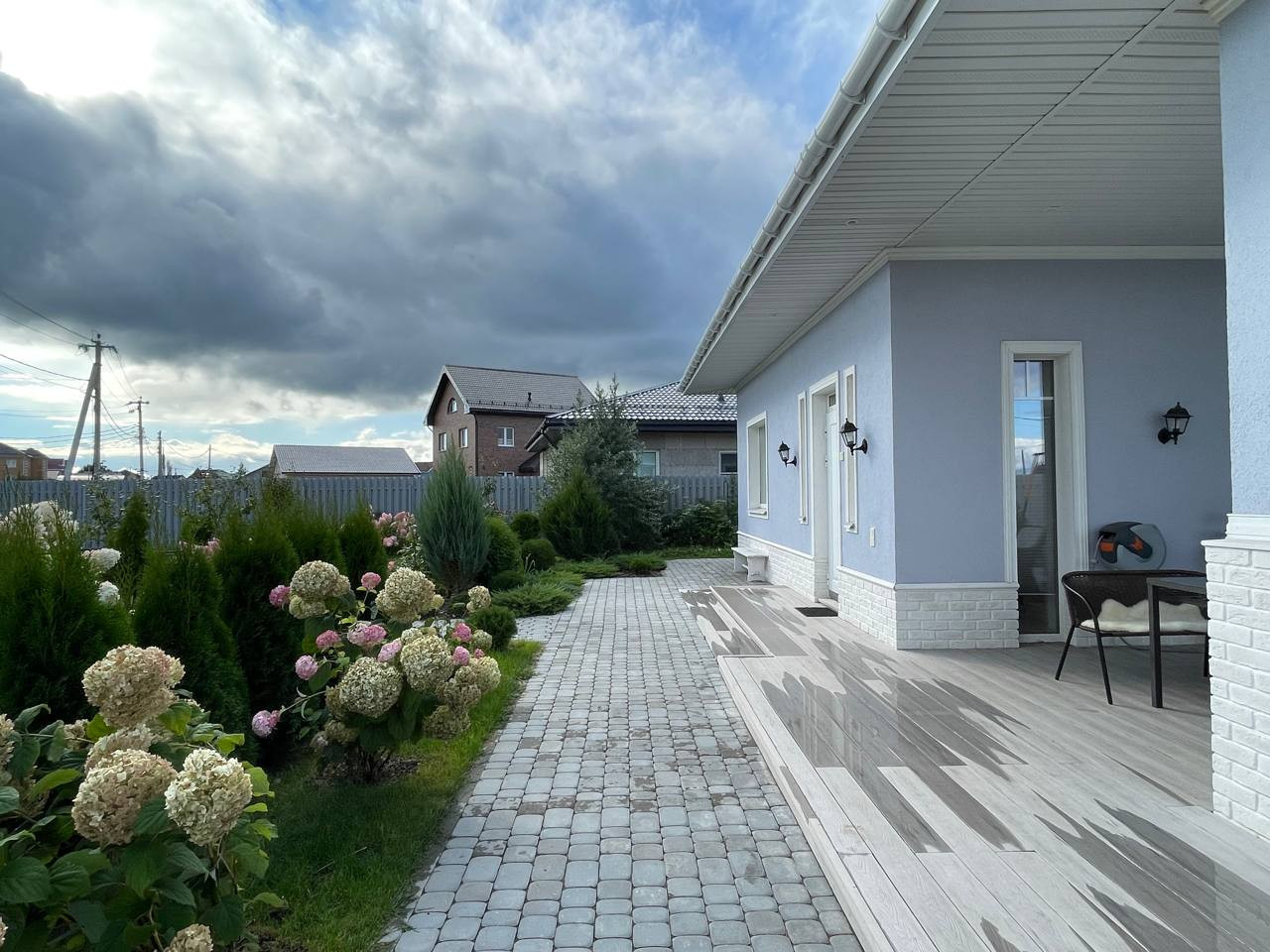 - дорожки выложены брусчаткой