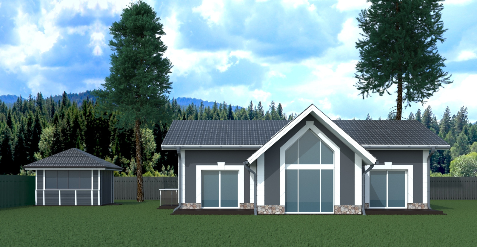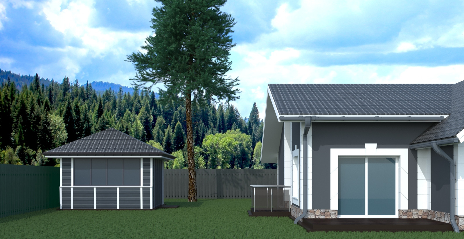 Электричество 15 кв.  Вода - скважина. Канализация-очистная станция.  Летняя кухня 30м2.