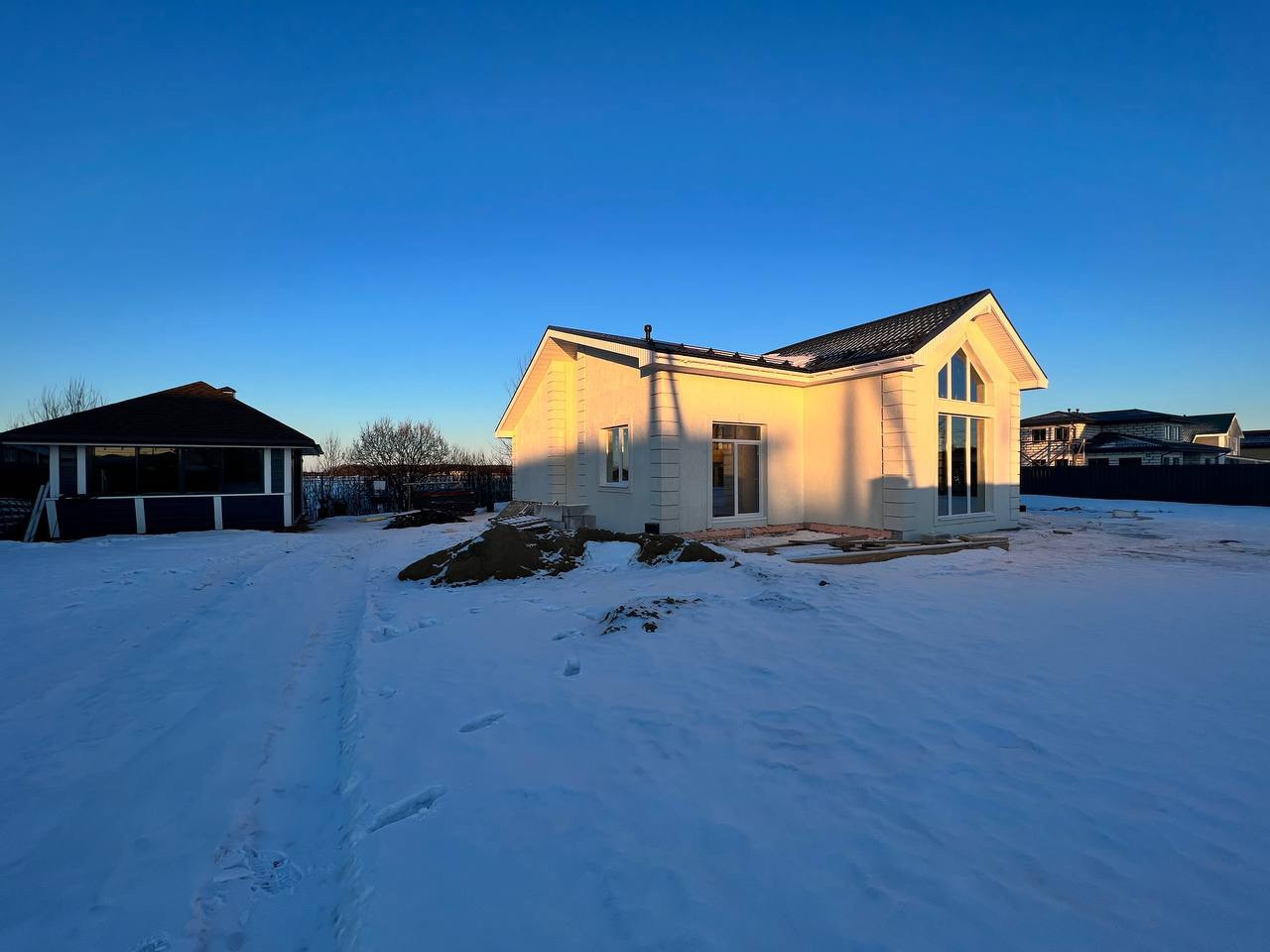 В прямой продаже зимний дом 201 м 2 на участке 15 соток ИЖС, участок сухой, прямой, огорожен забором, хороший заезд для автомобиля, соседи только с 3 сторон.