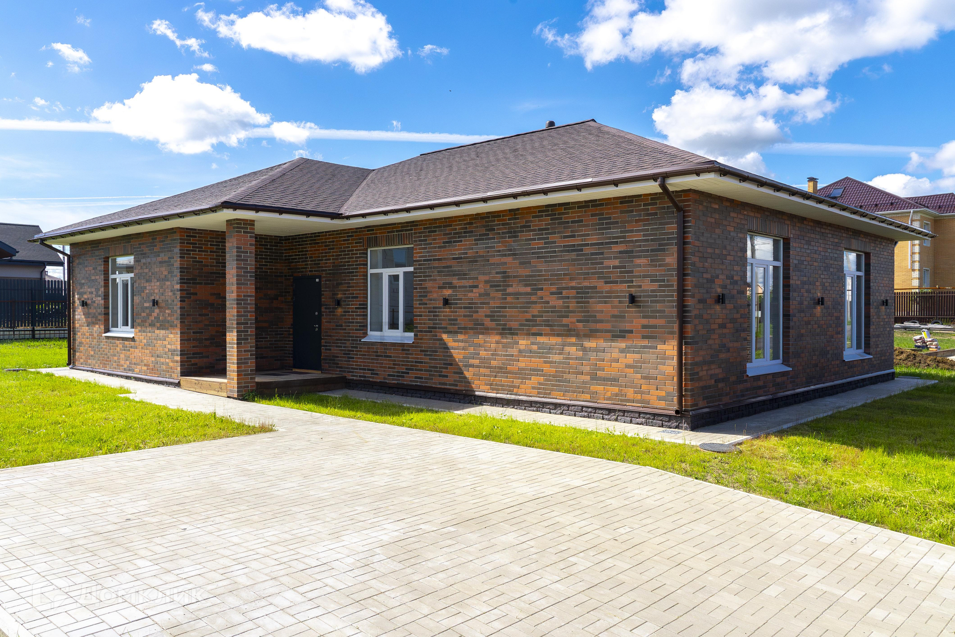 Есть отмостка из тротуарной плитки.