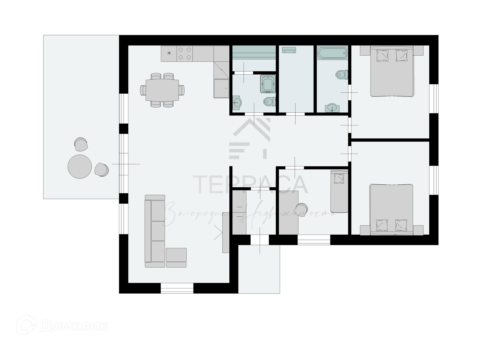 Дом площадью 190 кв.м. с учетом террасы.