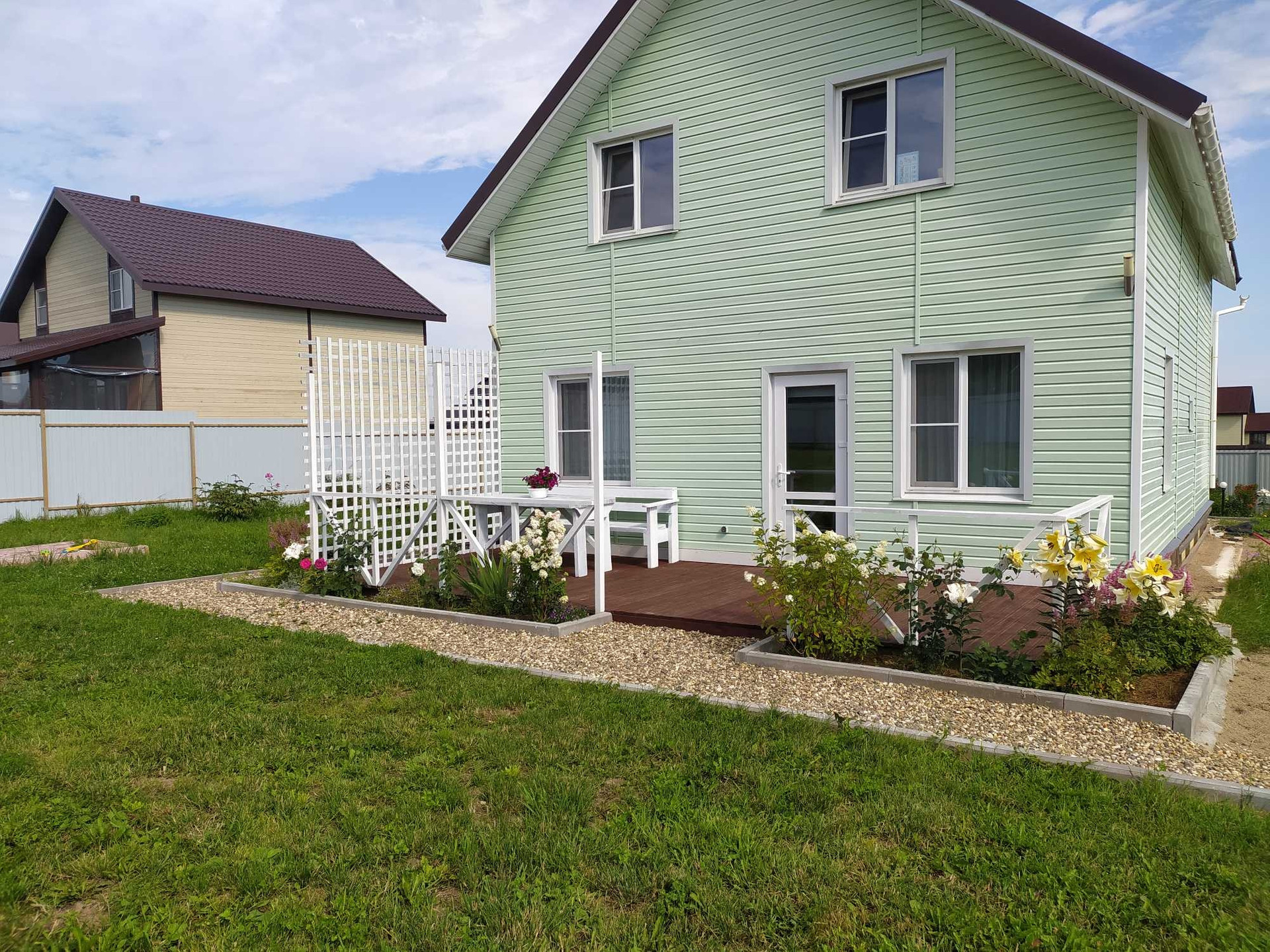 Предлагается к продаже благоустроенный двухэтажный дом для дружной семьи. Год постройки 2019, первый этаж-арболитовые блоки, второй этаж-каркасный. Отопление-электрокотел, первый этаж-водяные теплые полы, второй этаж-радиаторы. Инженерные коммуникации- электричество, 15кВт, септик, скважина 39м. Частично оставляем мебель и бытовую технику.  Дом находится в конце улицы, что обеспечивает минимальный трафик мимо, адекватные соседи. На участке располагаются плодовые деревья, теплица, детский спортивный комплекс, бытовой. хоз. блок, к дому присоединена большая  открытая терраса,сделана подсветка участка, дома. Территория полностью огорожена забором из профлиста, въездная группа- воротами с пультом ДУ. Так же имеется возможность присоединить дополнительный участок.