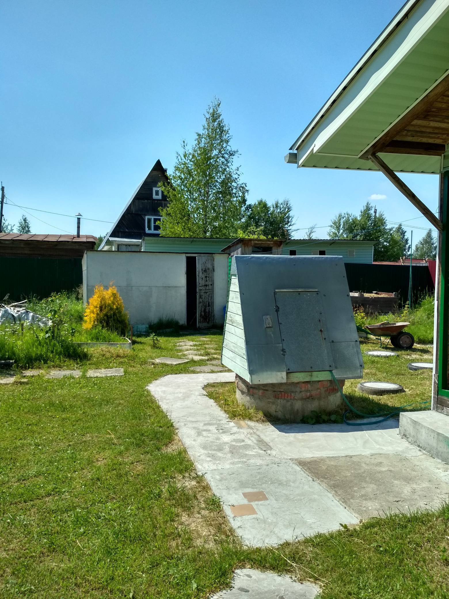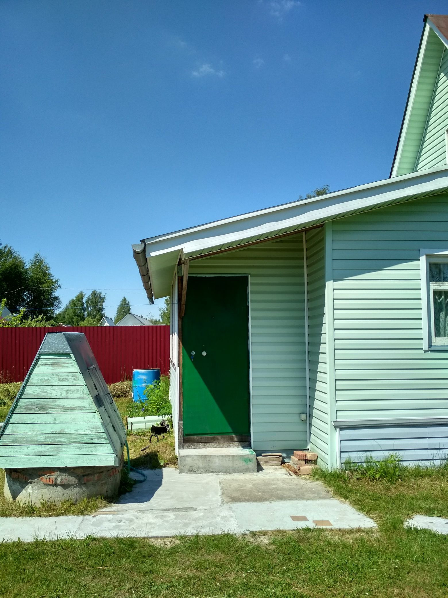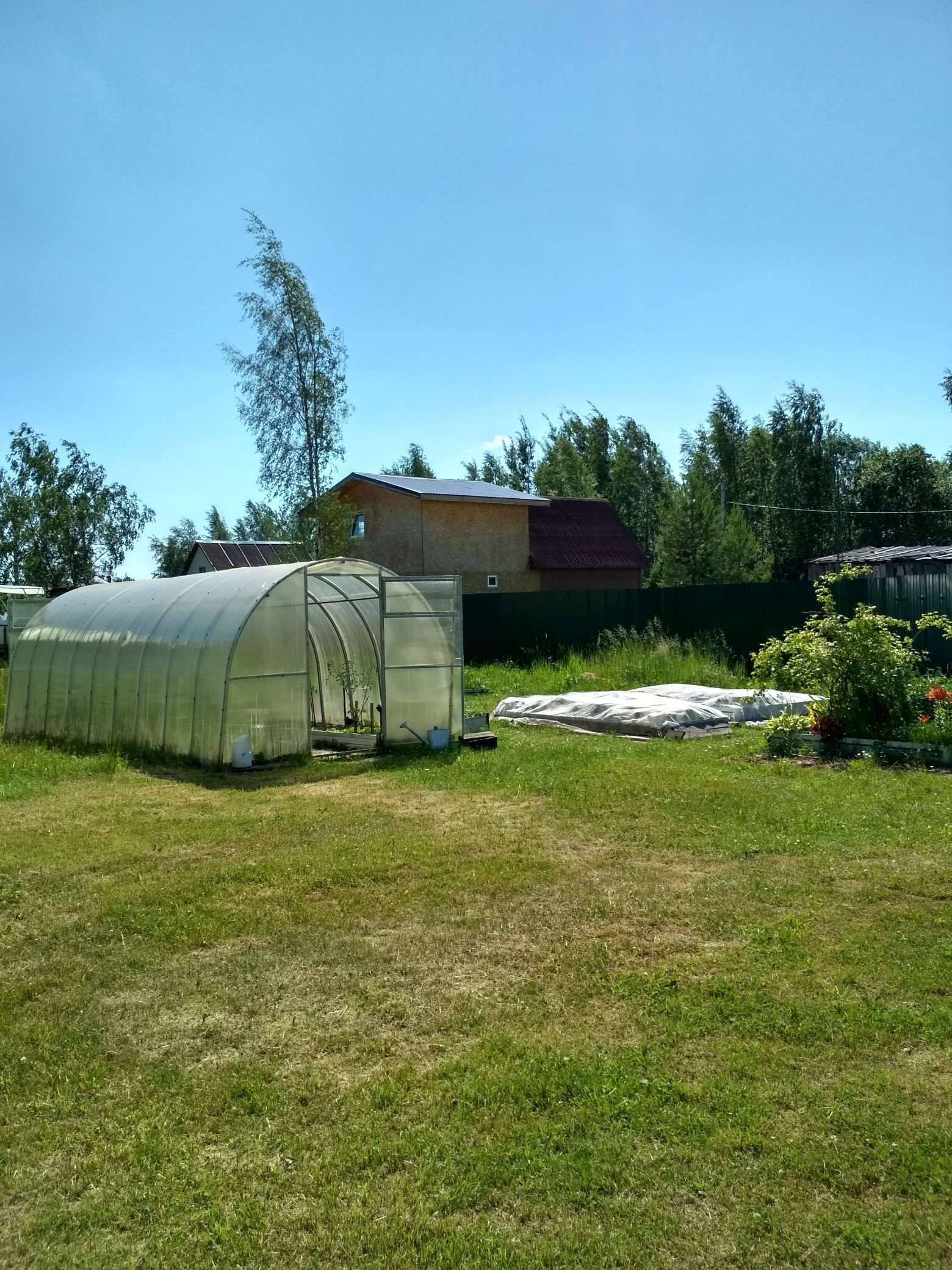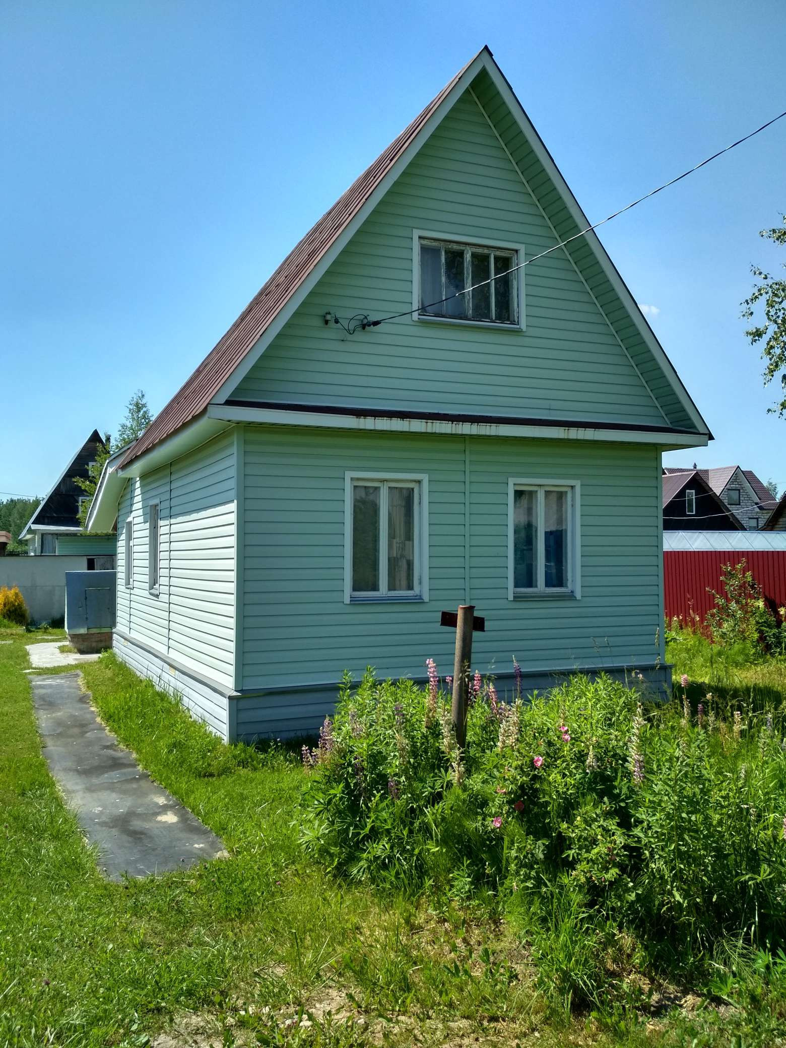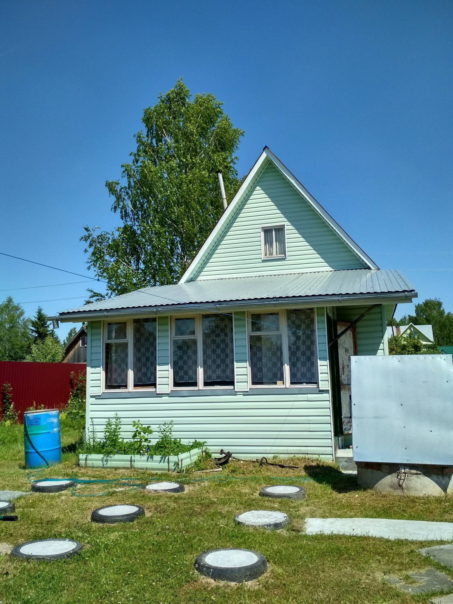 Участок в Романде ,третий от залива, дом каркасный, утеплен , обшит сайдингом, с печным отоплением(требует ремонта печная труба). Теплица 6*3, гараж, колодец, сарайка, туалет. С двух сторон у соседей глухой забор. Центральная часть участка  свободна, возможно построить новый дом либо баню. Торг уместен.