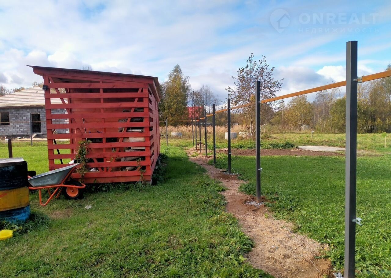 Участок площадью 8,22 сотки, ровный и сухой, окружен столбами для установки забора. Рядом расположен хозяйственный блок для хранения инструментов и инвентаря. Дорога круглогодично доступна, регулярно очищается зимой. До ближайшей автобусной остановки всего 350 метров, что обеспечивает удобное транспортное сообщение. В непосредственной близости находятся такие важные объекты инфраструктуры, как магазин «Магнит», продуктовый магазин «Северный Градус», школа и детский сад.