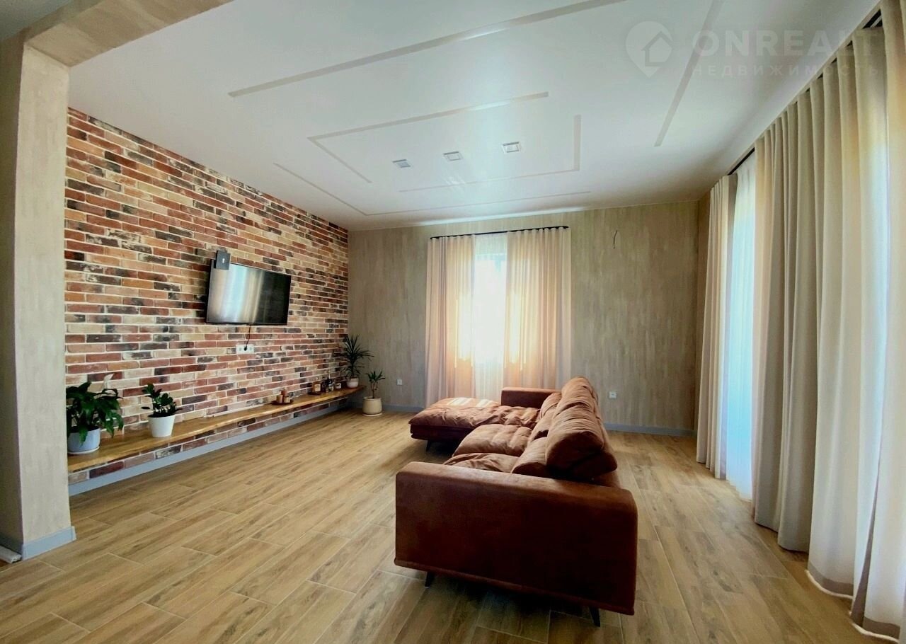 Первый этаж занимает светлая и просторная гостиная, оформлена в современном стиле Лофт общей площадью 30 кв.м. гостиная состоит из кухни и зоны отдыха. Отделка стен декоративная штукатурка покрыта лаком с выраженной стеной из декоративного кирпича в стиле Лофт. В кухне остается полностью встроенный кухонный гарнитур, выполнен из эмалевых фасадах со всей встроенной техникой: духовой шкаф САМСУНГ, варочная панель ЗИГМУНТ, посудомойка ВОSСН, установлен фильтр (система очистки воды). В центре гостиной располагается современны качественный диван и на декоративной стене установлена дизайнерская полка из натурального материала (Дуб). Потолки во всем Доме натяжные со световыми линиями, все полы в доме оснащены водяным теплым полом, что не мало важно для комфортного проживания и экономии в отоплении, так же установлен датчик комнатной температуры, регулирует сам. По всему полу постелена плитка керамогранит, хорошие качественные межкомнатные двери. Из коридора выходят 3 большие светлые раздельные комнаты, выполнены в стиле ЛОФТ и минимализм и одна большая кладовая, которую можно использовать под гардеробную. Все комнаты отделаны декоративной и венецианской штукатуркой, санузел с теплым полом и полностью выполнен в кафеле плитка керамогранит, установлена инсталляция с гигиеническим душем, а так же сделана современная просторная душевая кабинка с тропическим душем 120*90, санузел оборудован мебелью из керамогранита (большая тумба с раковиной ). Так же на первом этаже находится бойлерное помещение, полностью с оборудованием: установлен качественный и надежный электрический котел, водонагреватель на 150 литров. Дом очень теплый и просторный.
