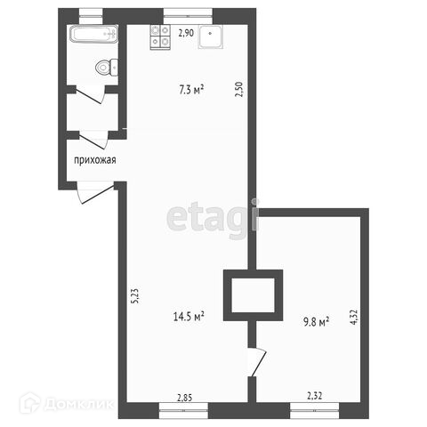 Жилая площадь 24.3 м2