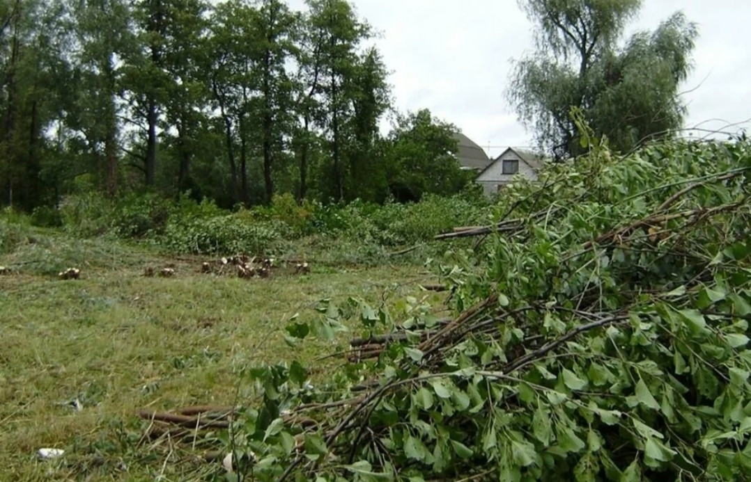 сухой, ровный участок, деревья спилины. рядом с участком электрический столб.