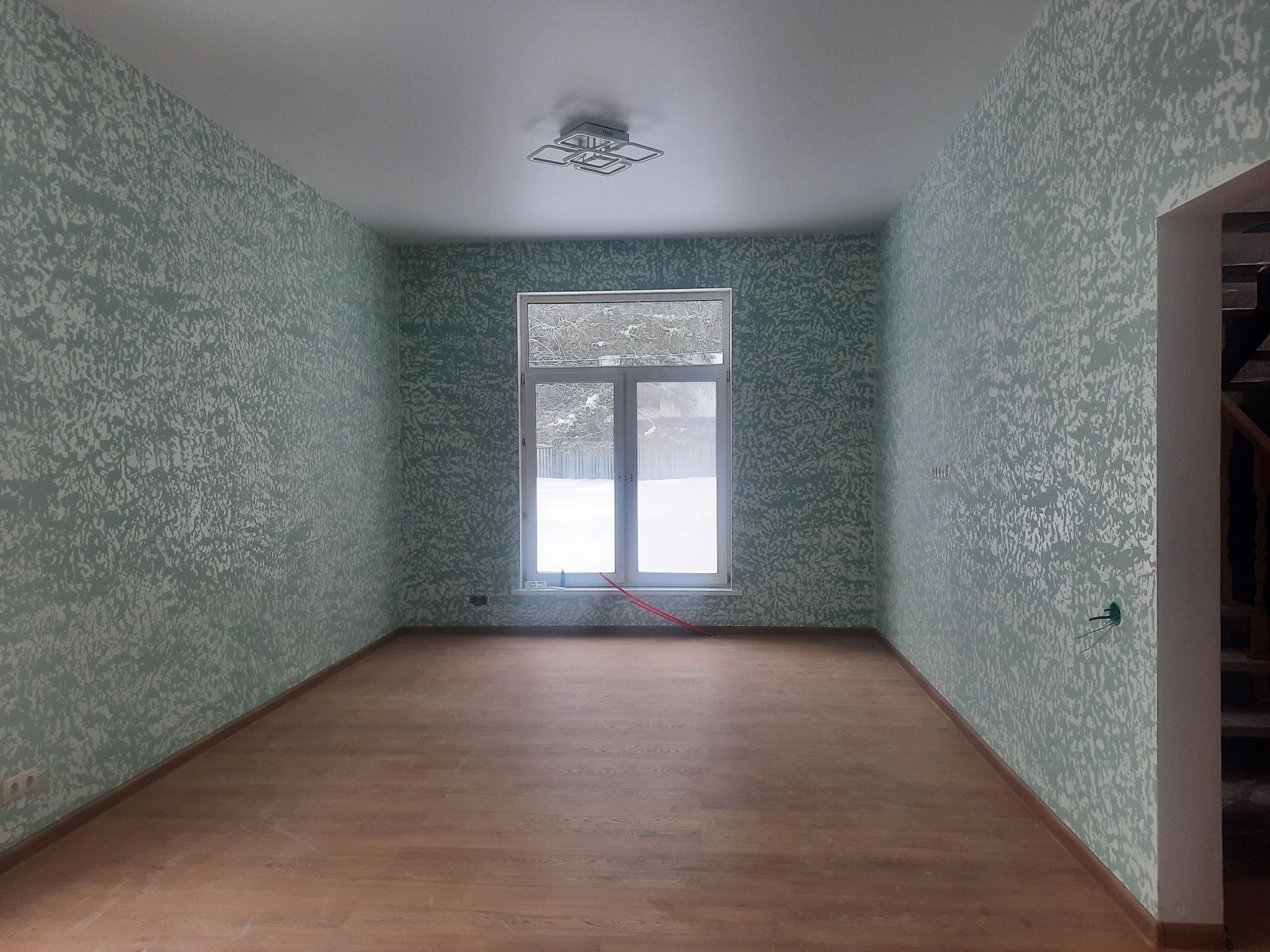Потолки натяжные, полы ламинат, стены фактурная штукатурка по гипсокартону, электрика LEGRAND.
