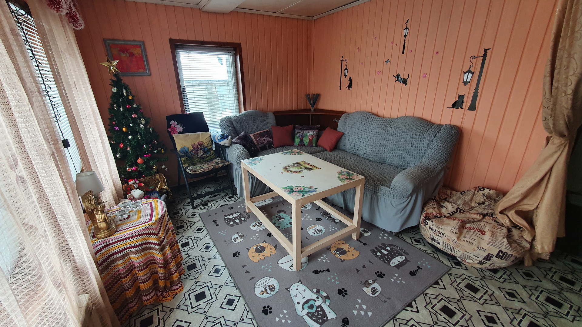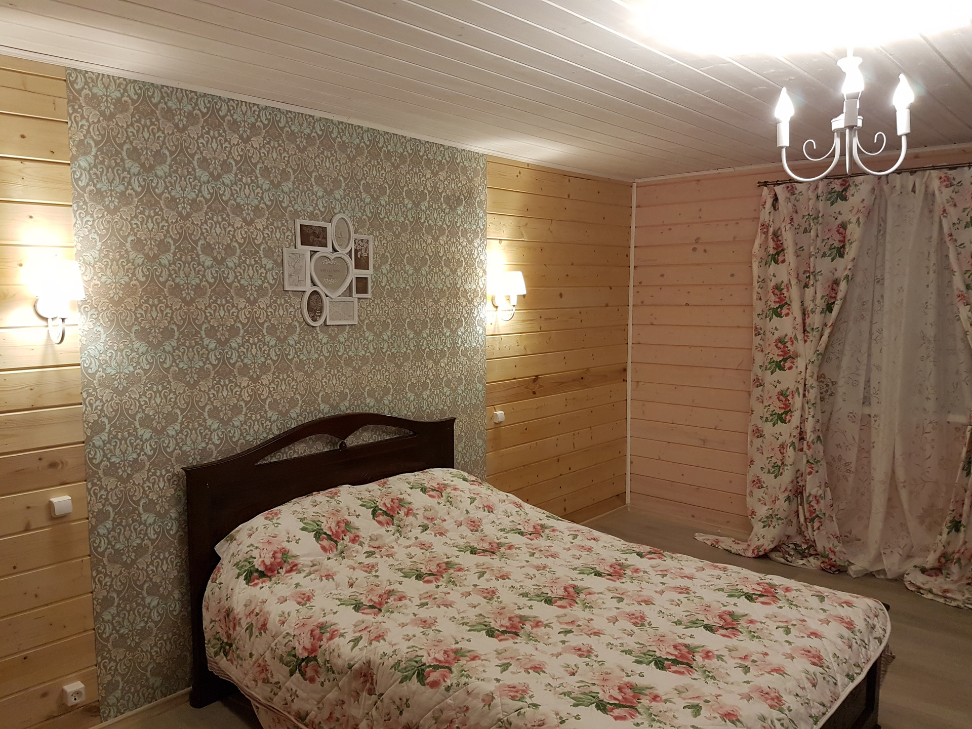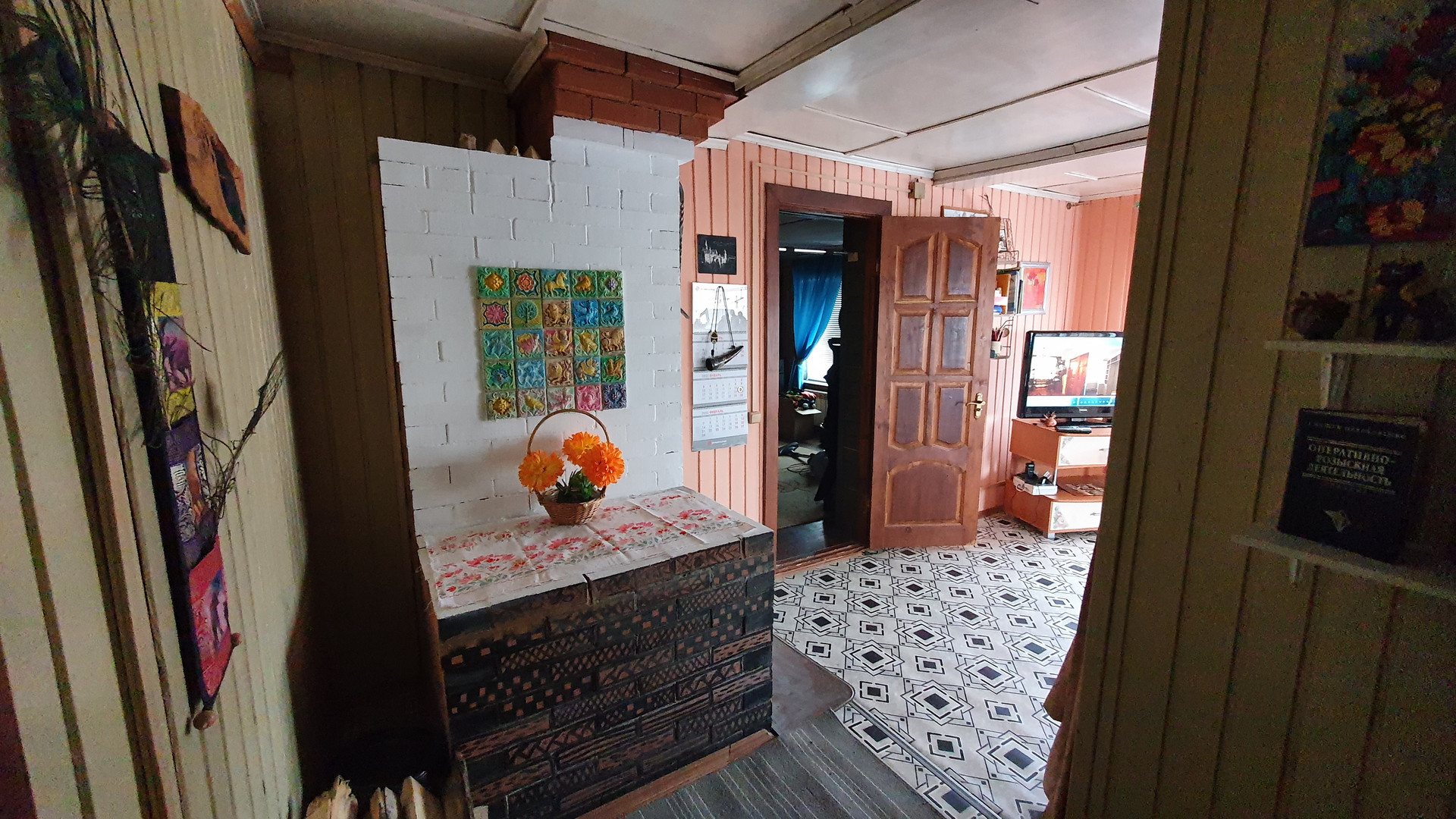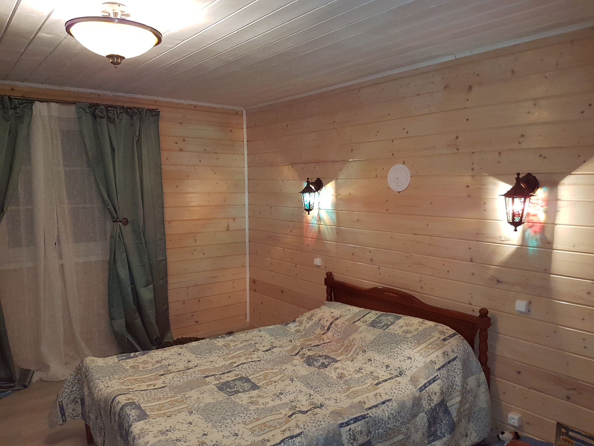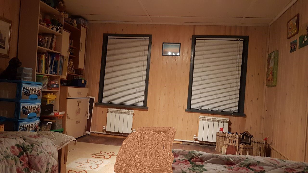 -на 1м этаже- огромная зона прихожей 40м.кв; кухня 18 м.кв; санузел с душевой кабиной; гостиная с печкой, которая пригодна как для отопления, так и для приготовления пищи; спальня 20м.кв; гардеробная комната; через прихожую выход к большому гаражу встроенному в дом.