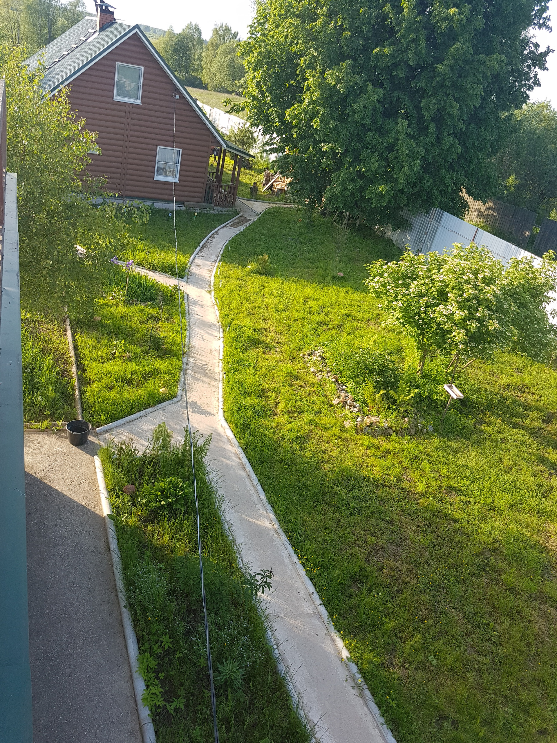 из зеленого профлиста. На участке стоит отдельно стоящий