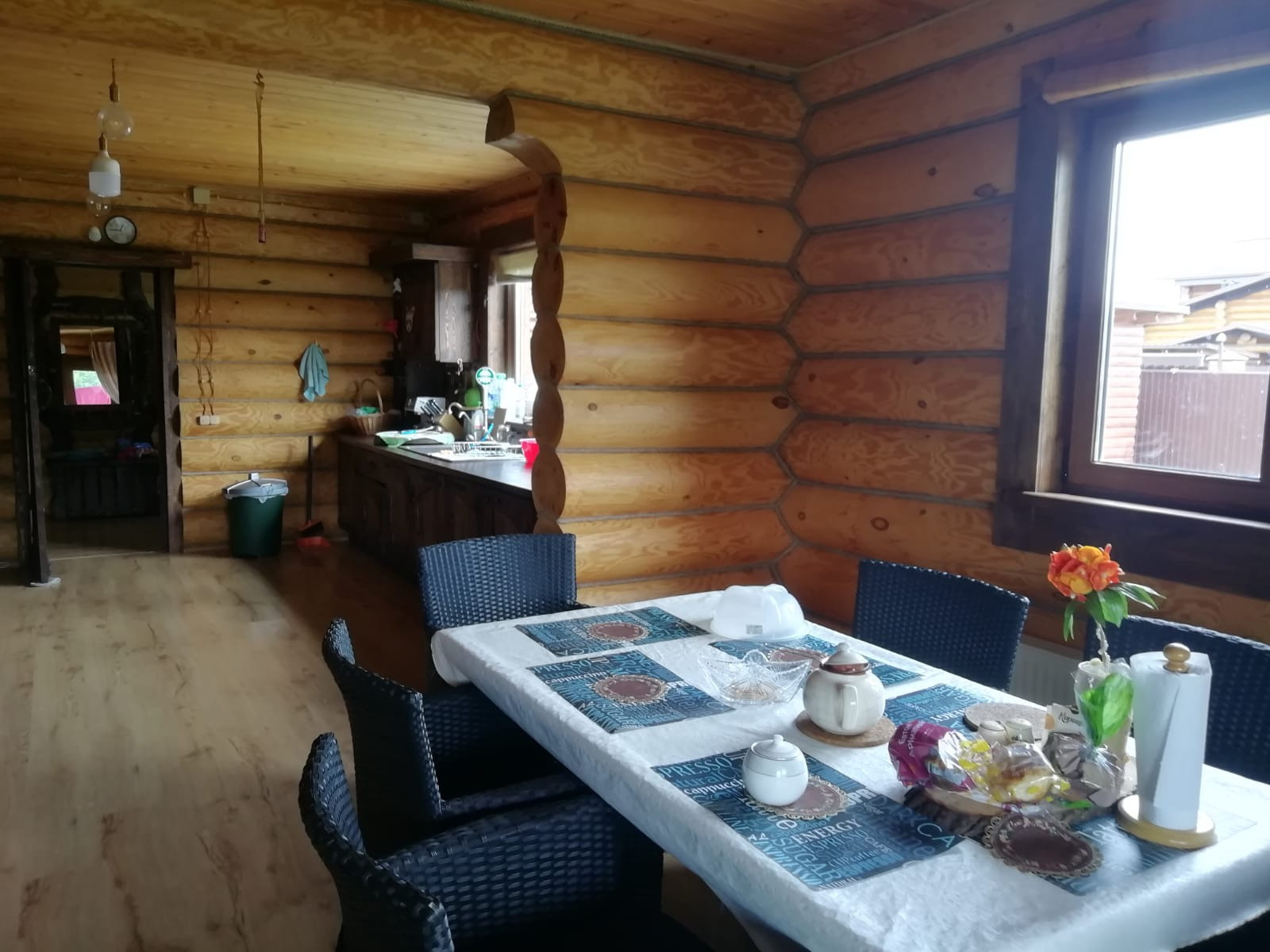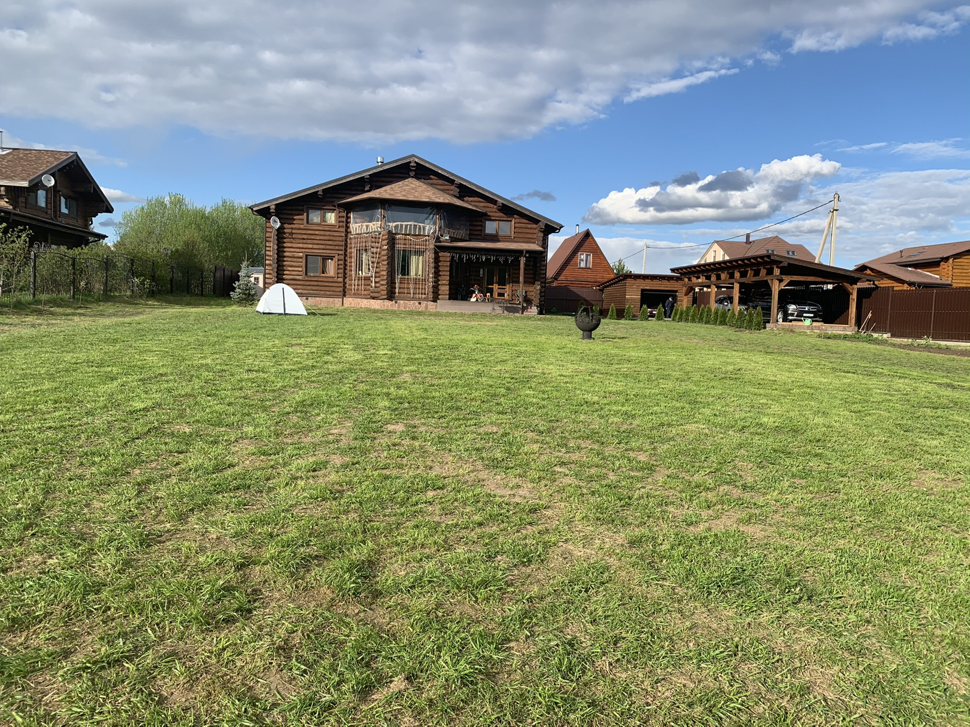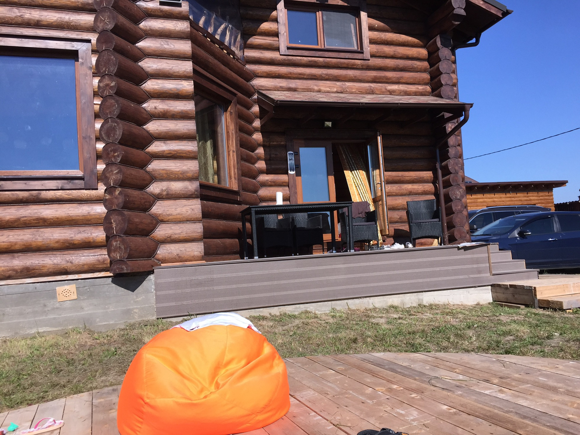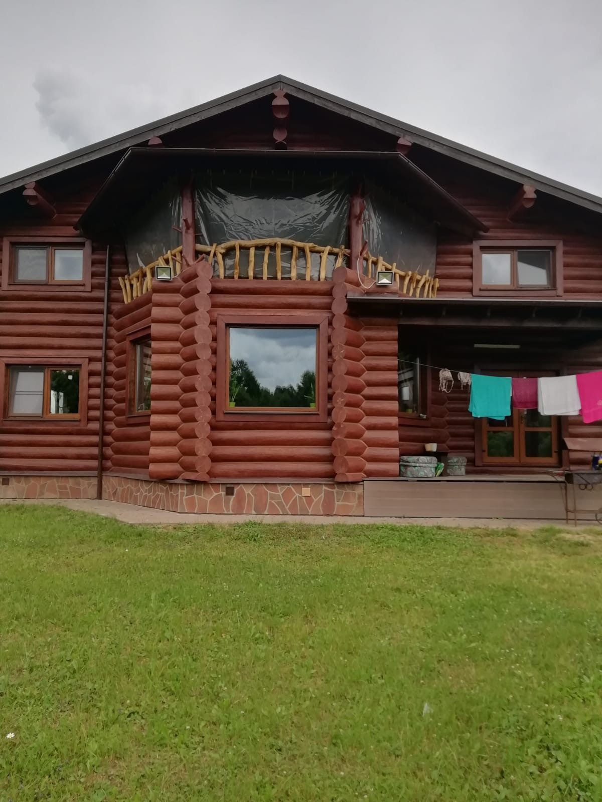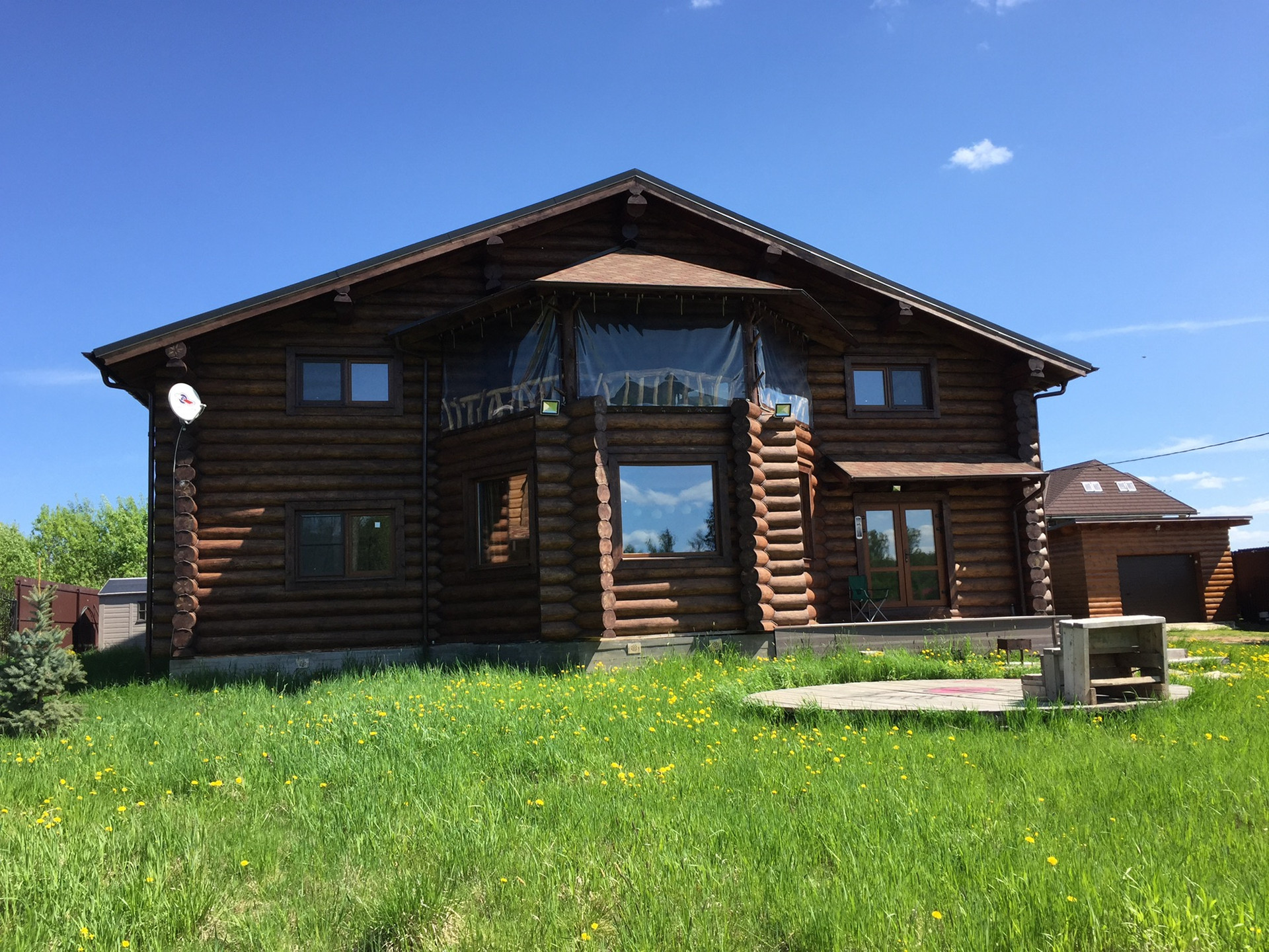 Первая линия (перед водоемом), есть навес для 2х машин (помимо гаража) и хоз блок. Мебель в доме изготовлена под заказ из дерева. 3 санузла, камин, веранда, балкон. Дом полностью мебелирован и оборудован для проживания (включая всю технику и утварь). Есть фотографии на разных этапах строительства. Свежепокрашен и «законопачен» герметиком. Высокие потолки.