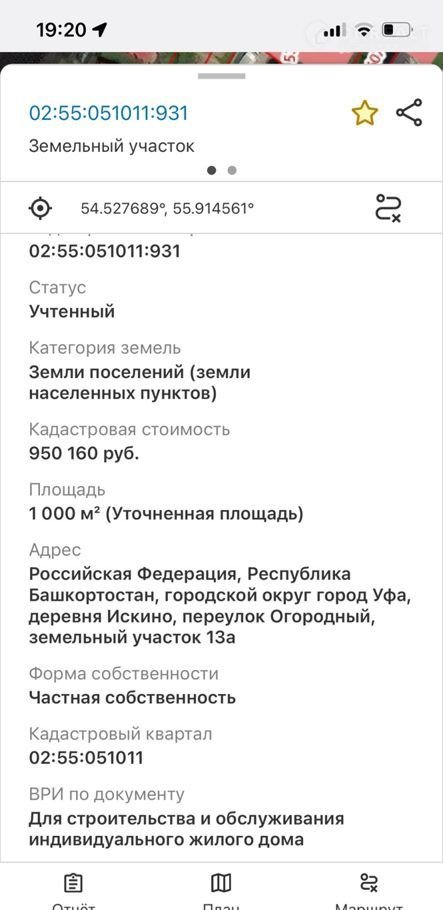 Адрес: д.Искино пер. Огородный д 13а, Кировский район г. Уфы, уфимская прописка. кад.номер: 02:55:051011:931
