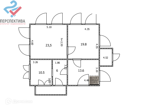 Высота потолков 2.3 м