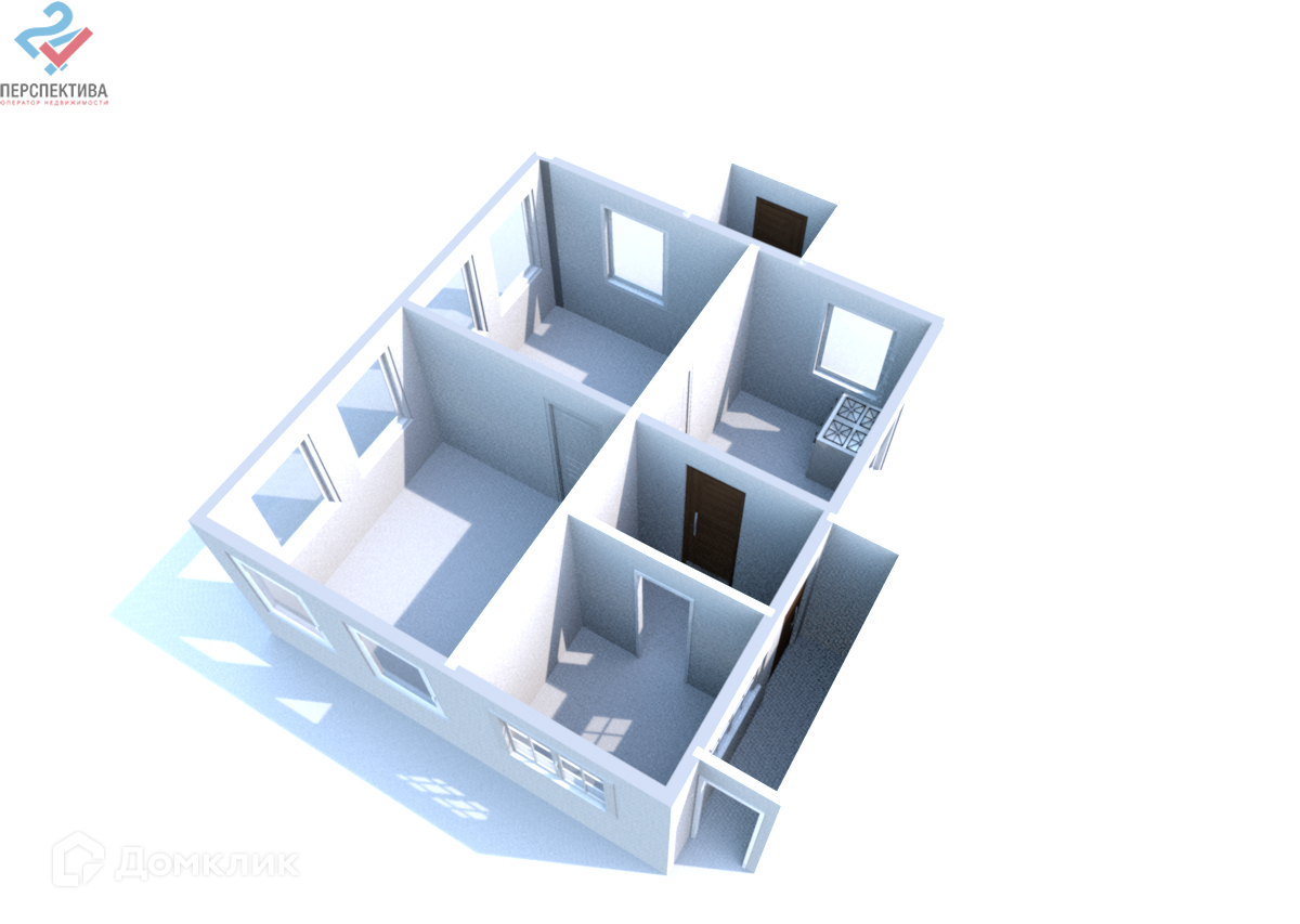 - В доме две жилые комнаты, кухня