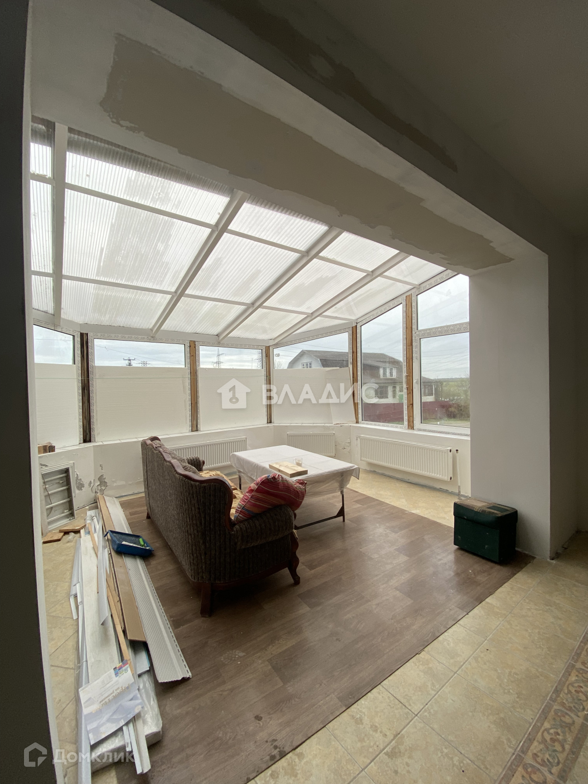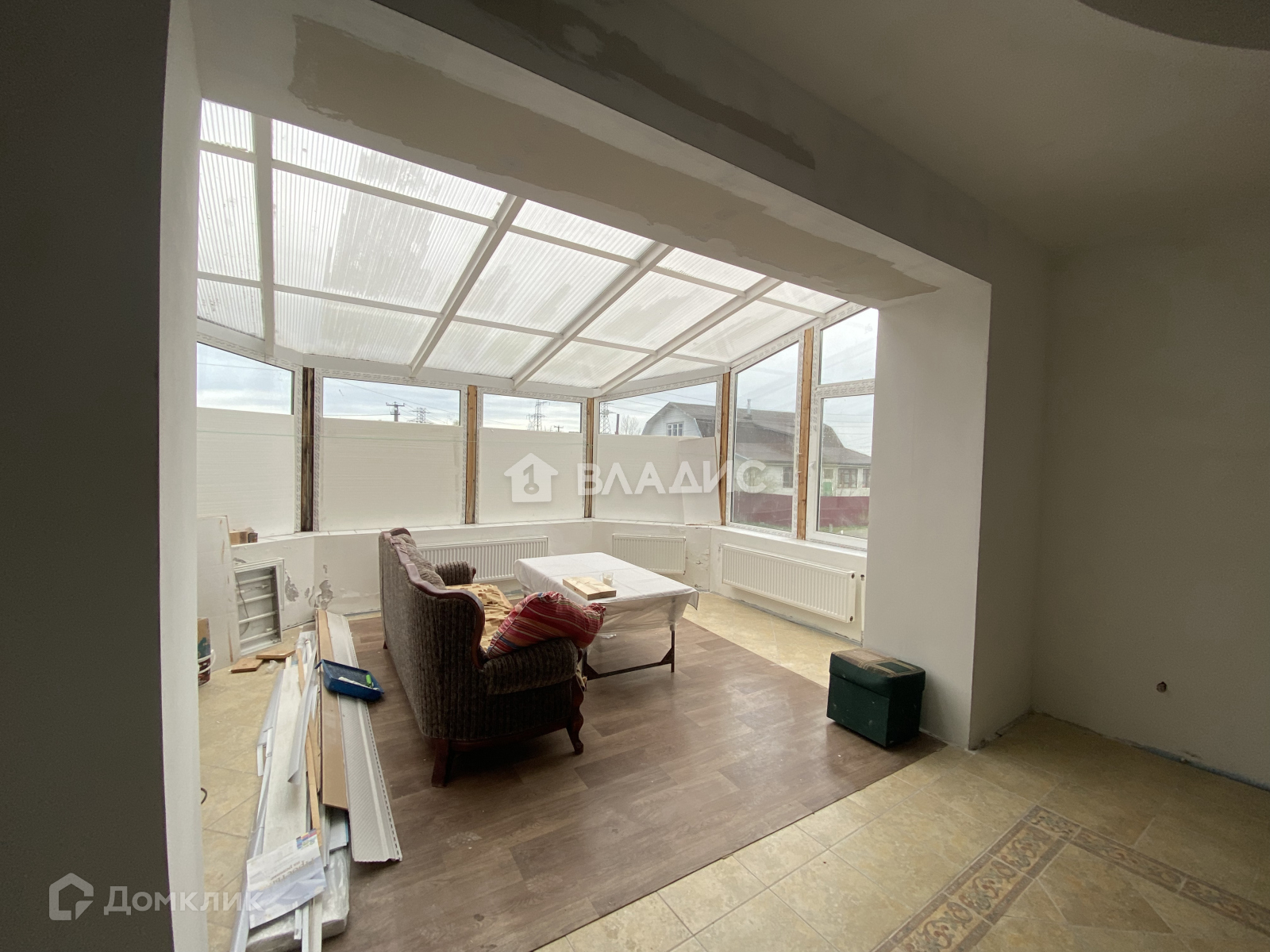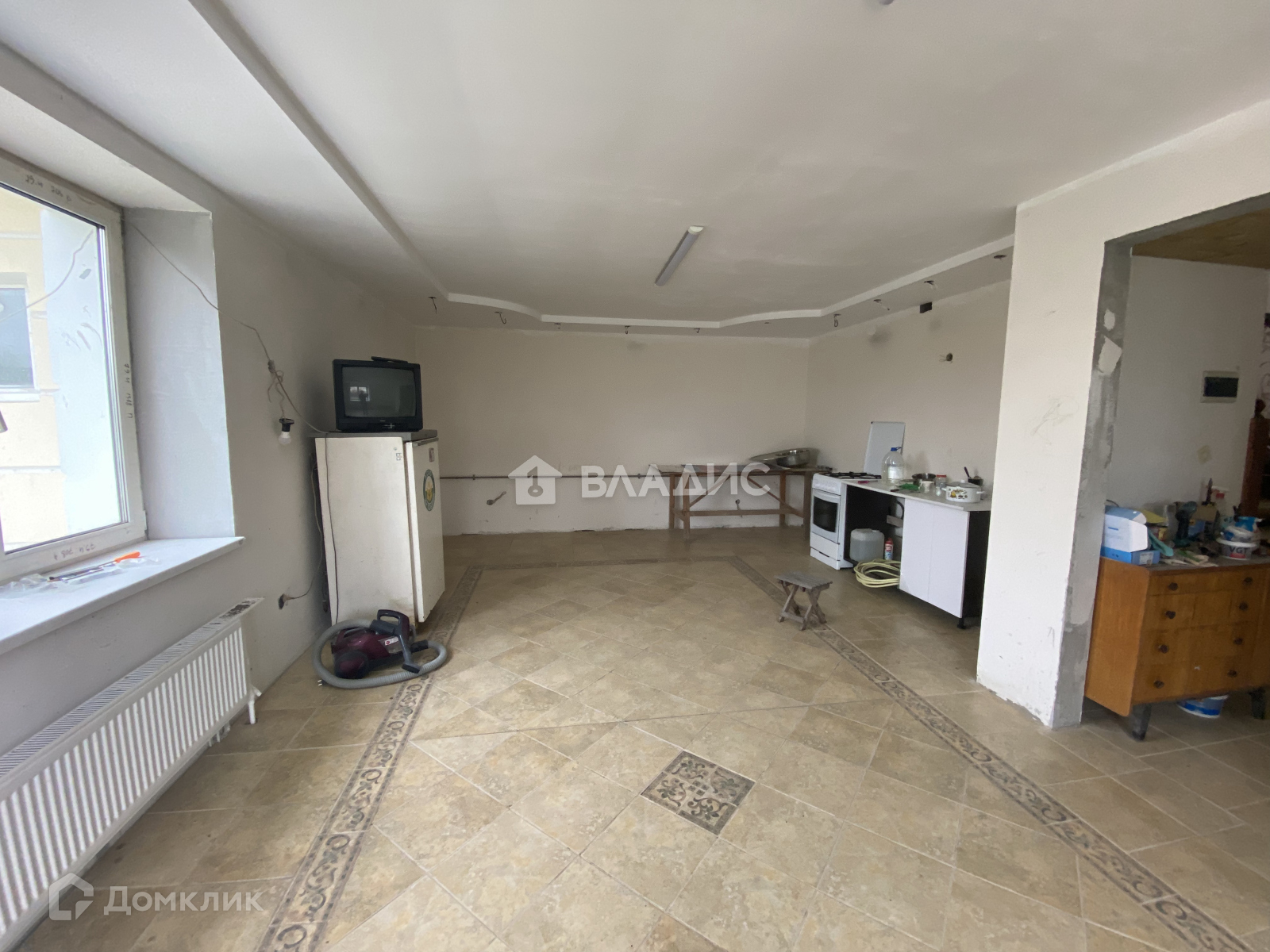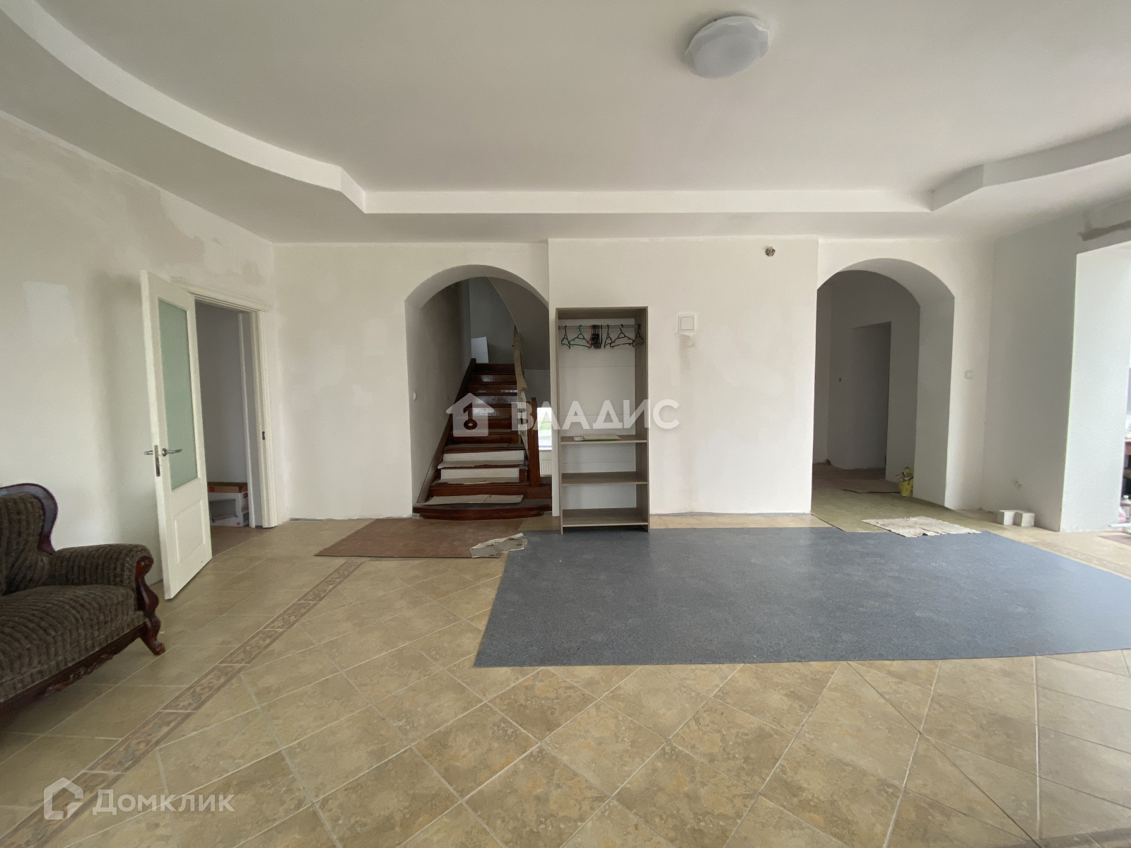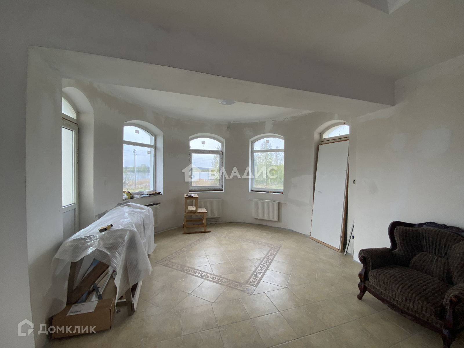 -сделана предчистовая отделка, местами уложена плитка