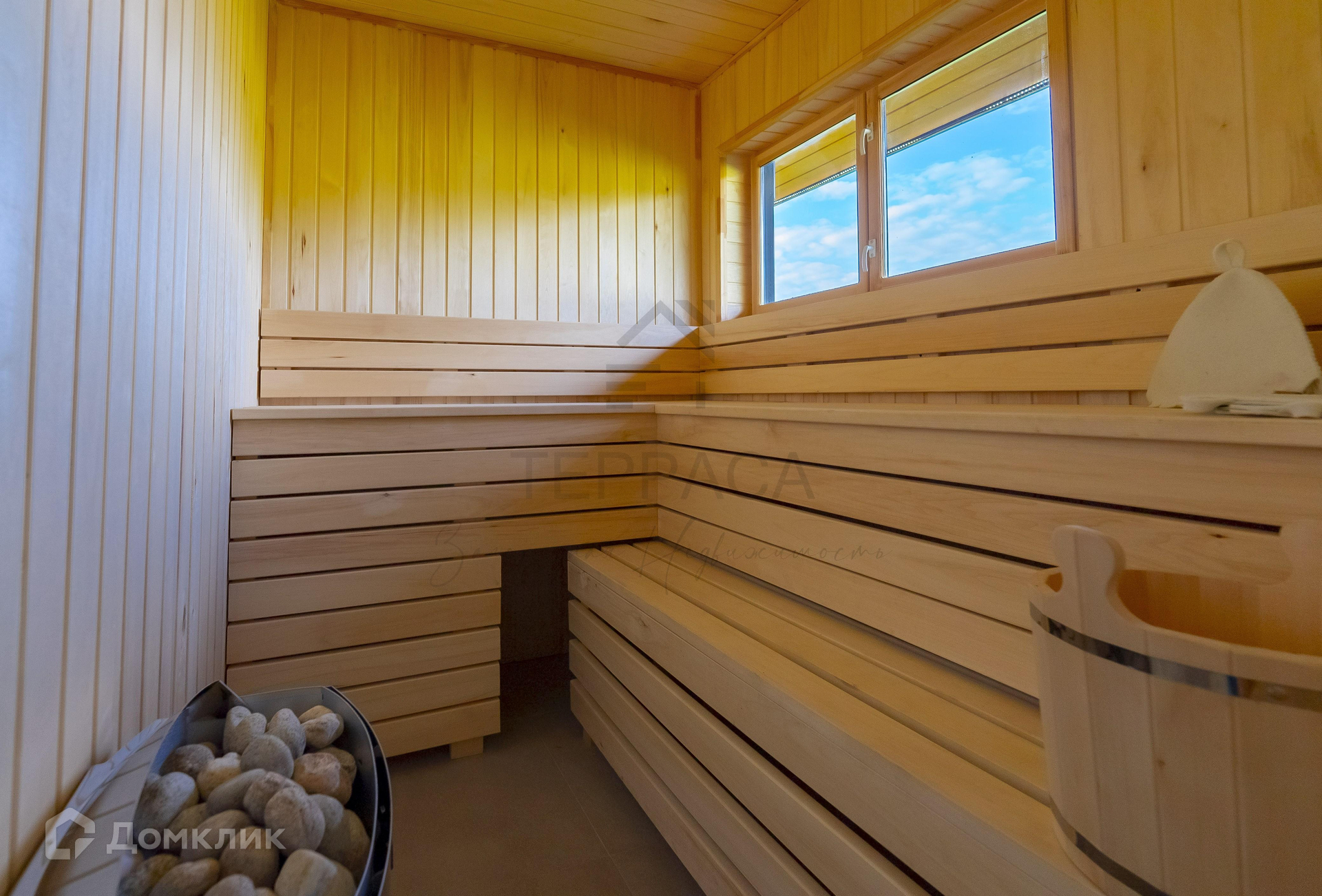 Большая крытая Терраса, прихожая с гардеробной и кладовой, коридор, холл, 3 изолированные спальни с панорамными окнами и выходом на террасу (одна из комнат это мастер-спальня с собственным с\у и гардеробом). Удобная кухня с собственной кладовой и мойкой у окна, полностью оборудована бытовой техникой. Зона столовой у окна и высокий потолок со вторым светом. Гостиная с крутым камином и зоной под ТВ. 2 с\у в кафеле, подвесная мебель и унитазы с инсталляцией, гигиенический душ. Сауна с большим окном в парной и техническим трапом для слива, тропический душ с термо регулировкой, ведро для обливания холодной водой. Постирочная с установленной стиральной машиной BOSCH и котельная полностью оборудована техникой.