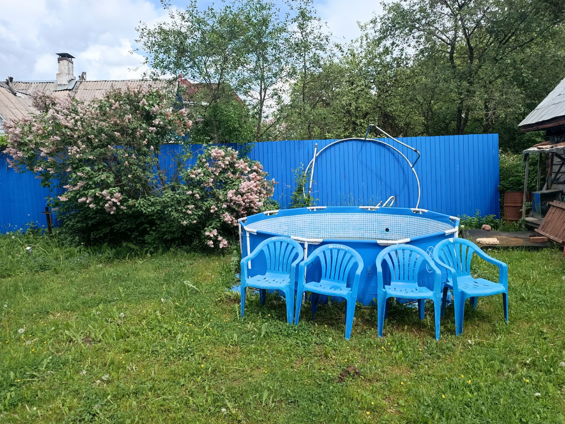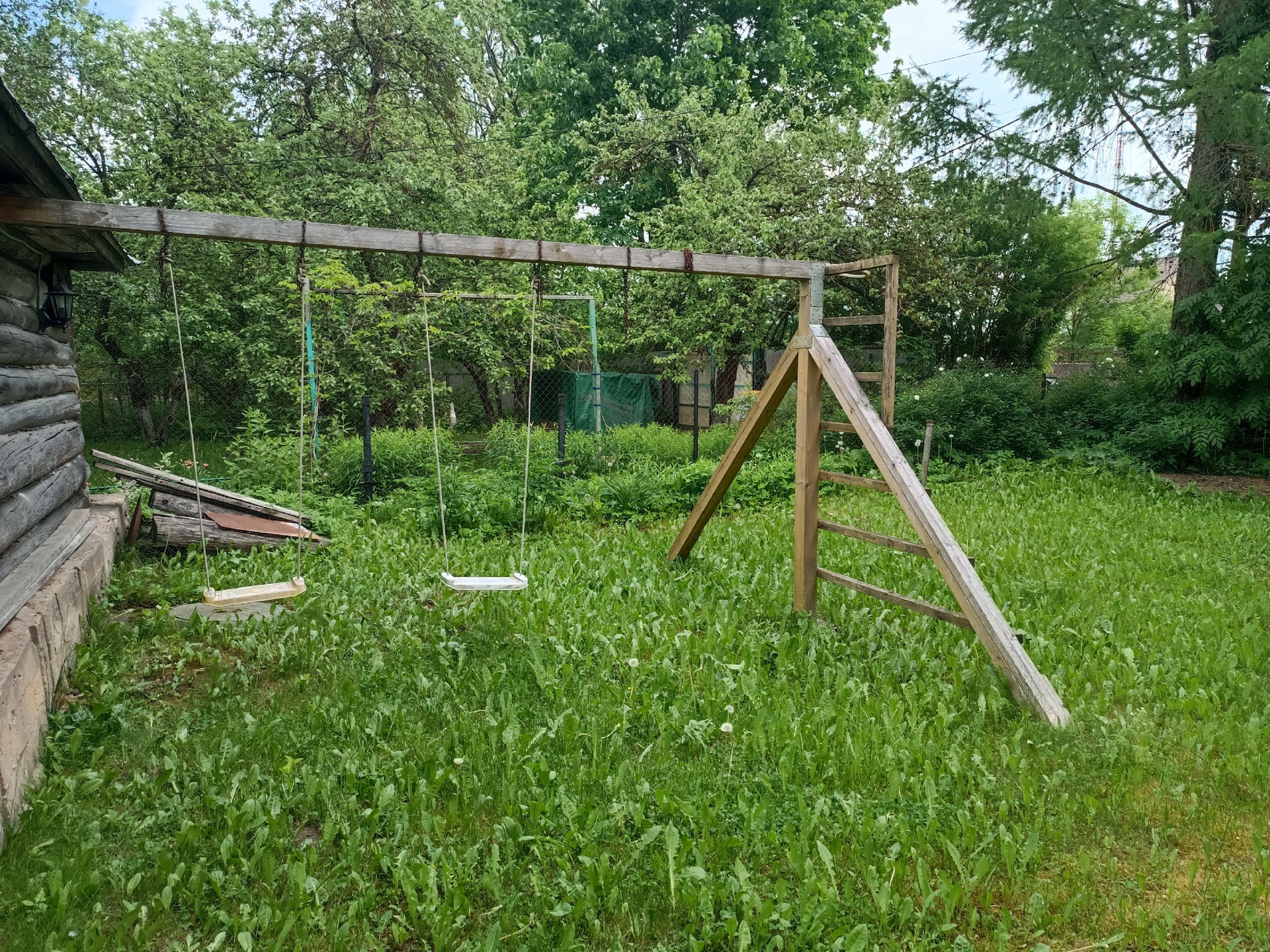 На участке: бассейн, качели, просторная парковочная зона.