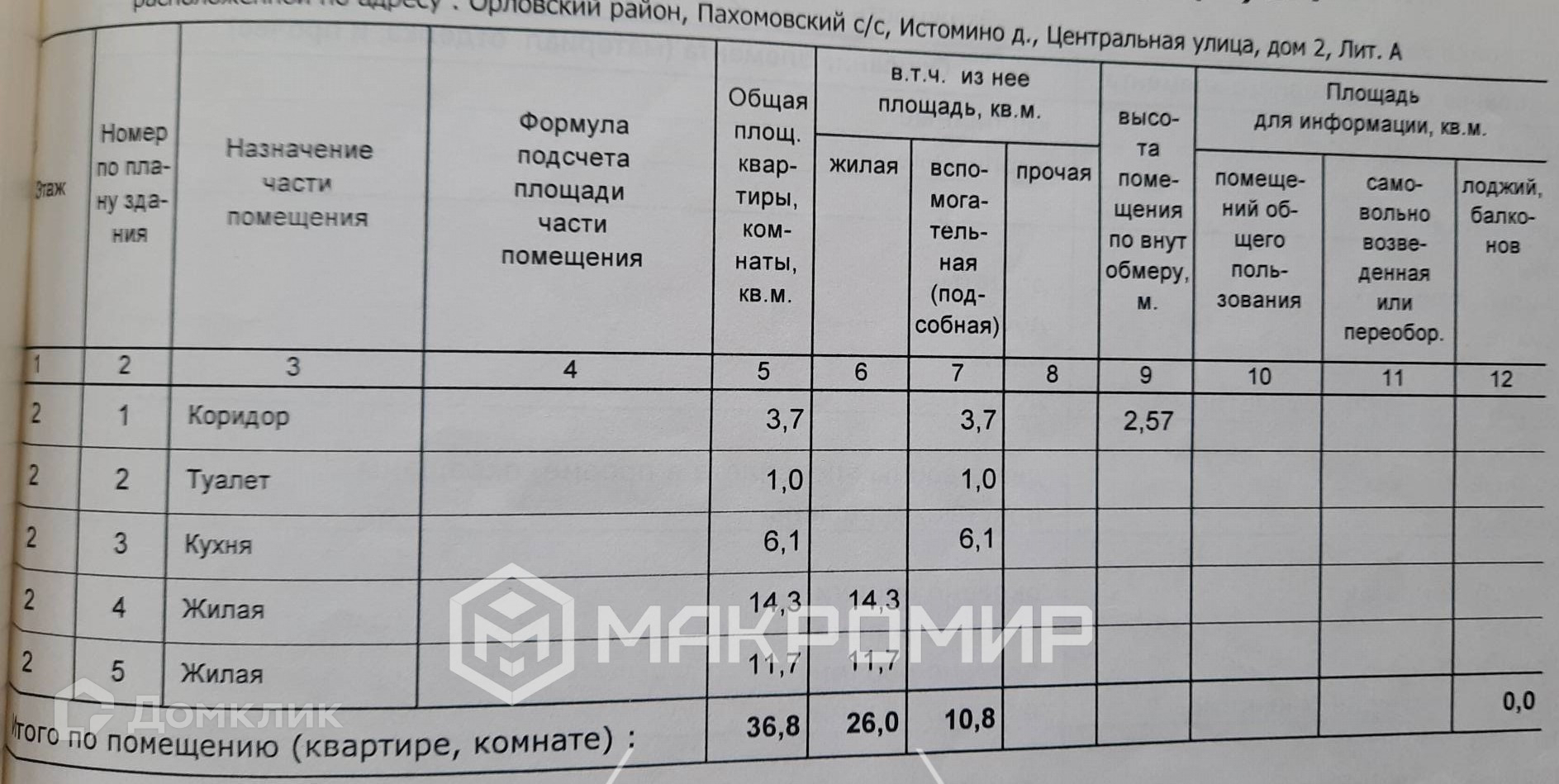 Общая площадь 36.8 м2