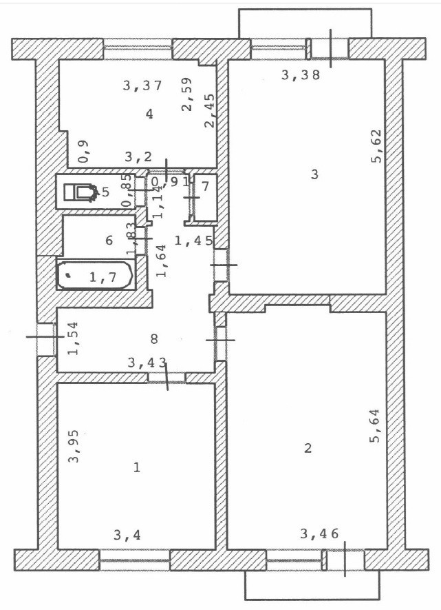 Жилая площадь 52.2 м2