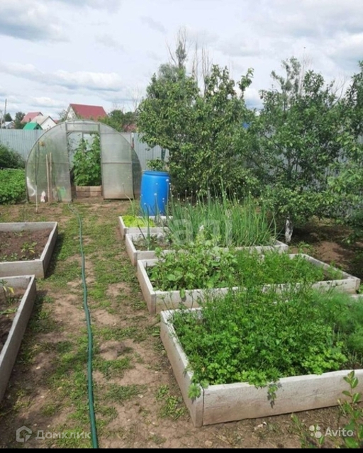 В огороде: плодовые деревья, ягоды, плодовые кустарники, грядки с ограждениями, теплица 8 метров.
