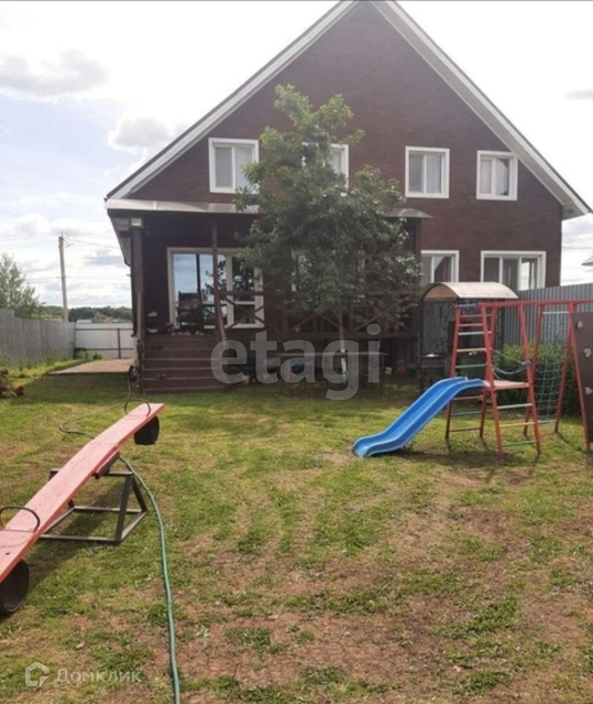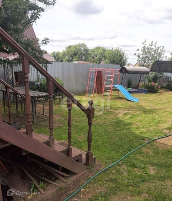 Во дворе имеется: кованый мангал, стол, детская площадка, качели, песочница.